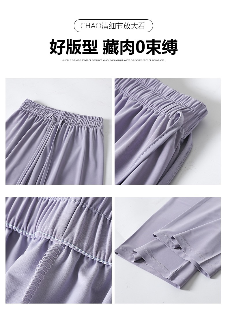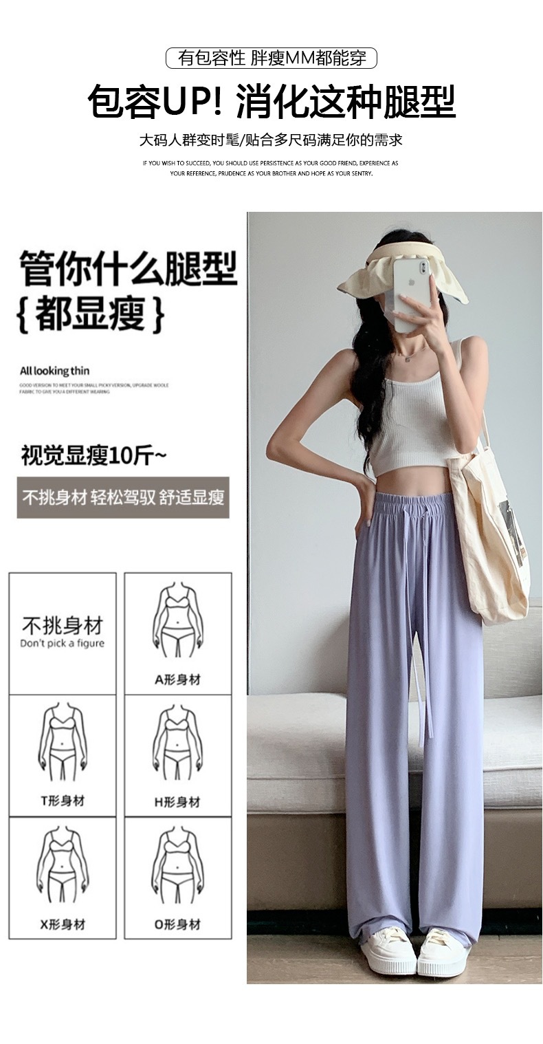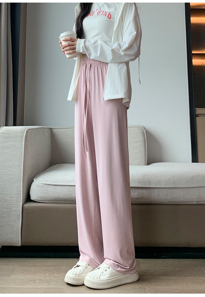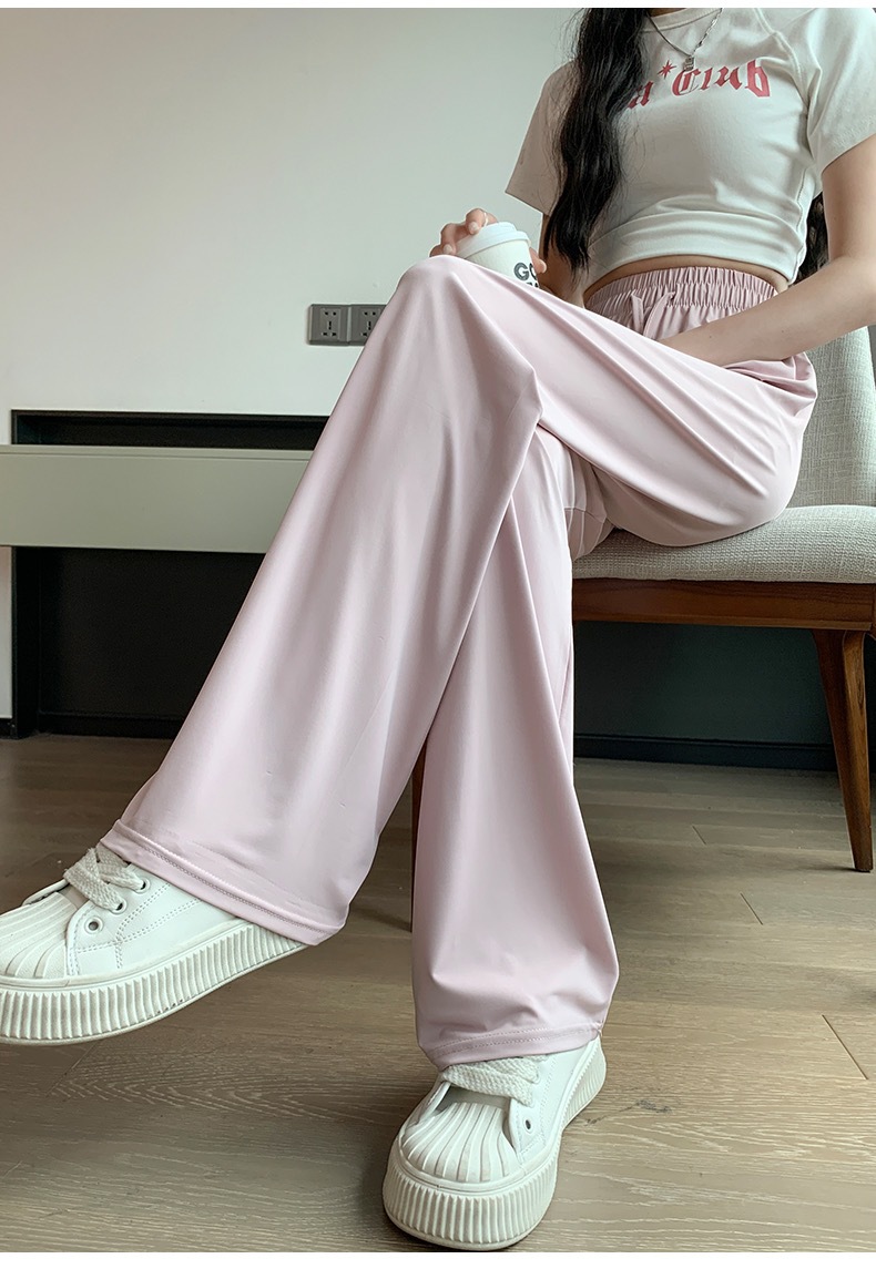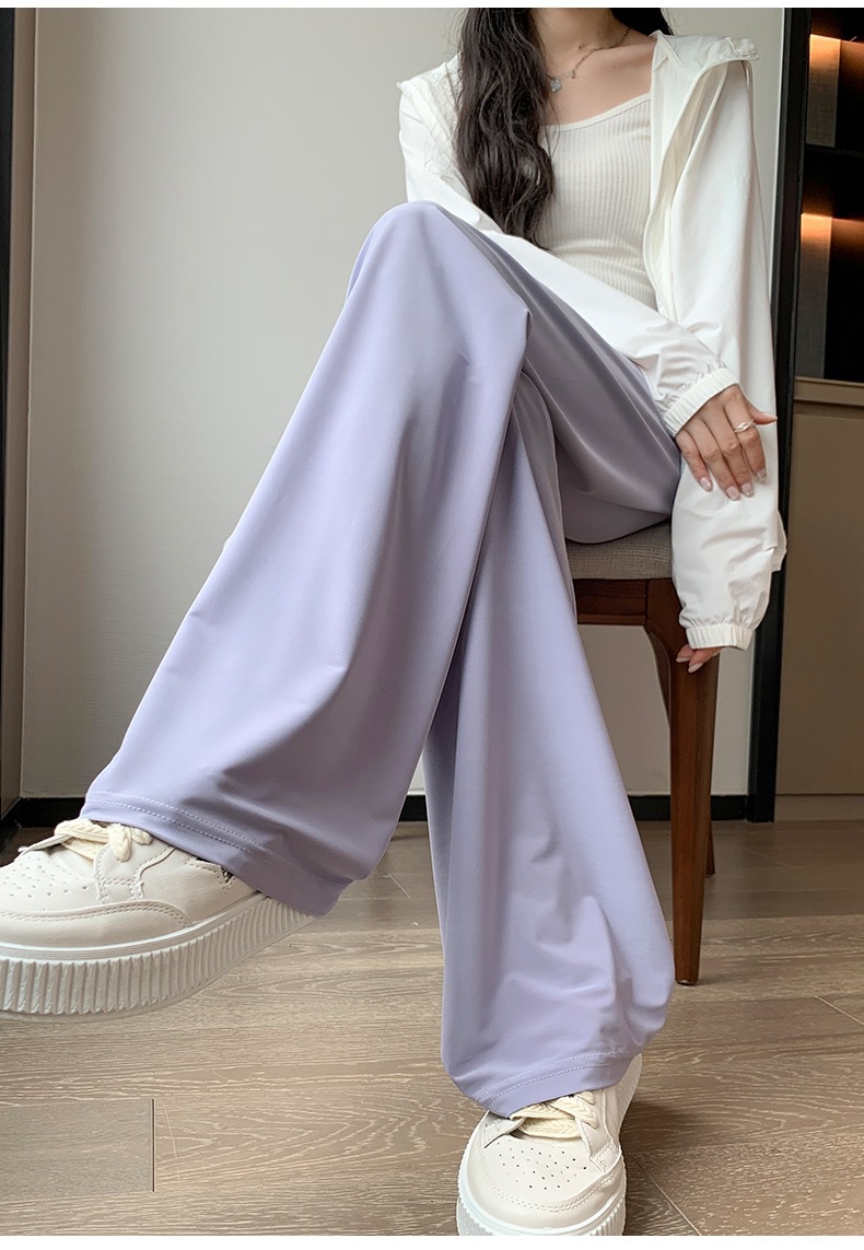선스크린 바지 여성의 여름 높은 허리 드레이핑 넓은 다리 바지 캐주얼 스트레이트 바지 좁은 얼음 실크 얇은 빠른 건조 시원한 바지