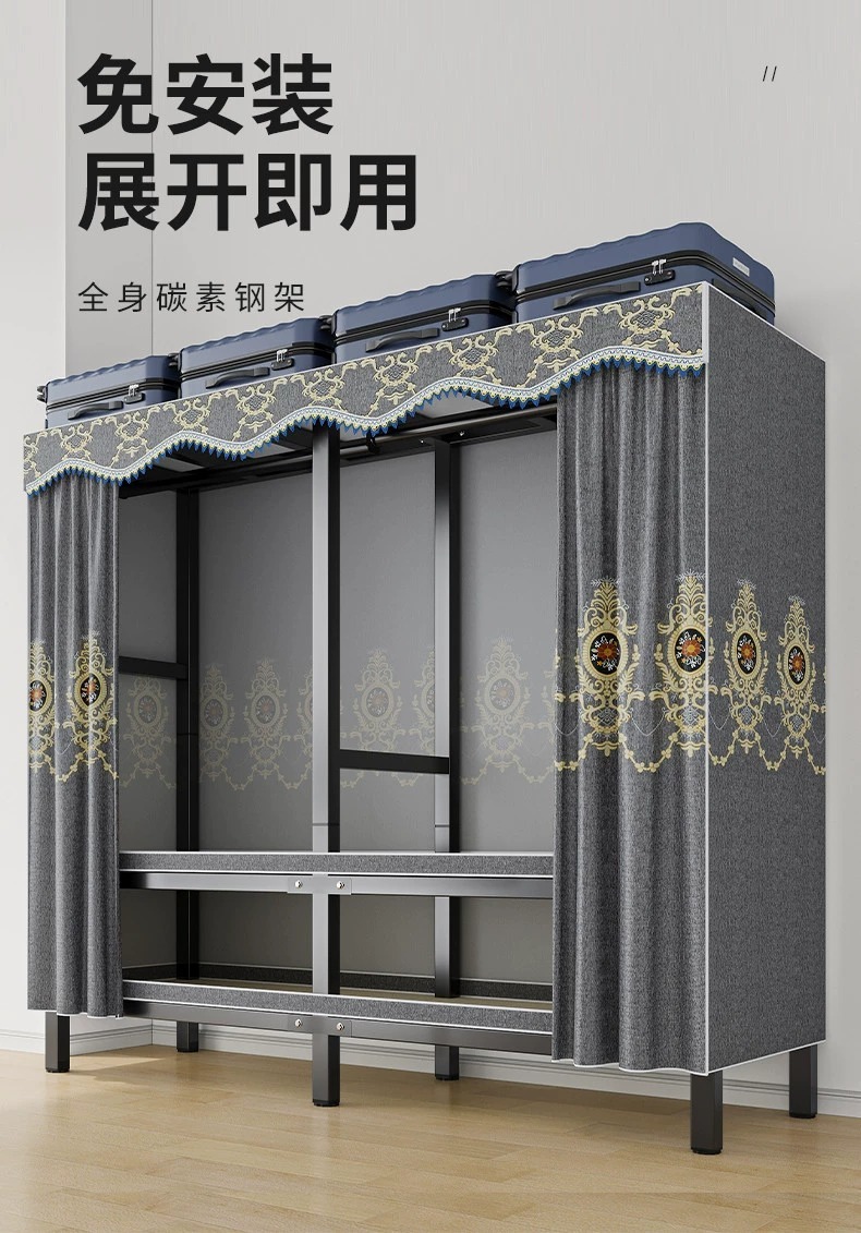 설치-무료 간단한 천 옷장 렌탈 룸 홈 침실 강관 강화 강한 접는 작은 가득 차있는 옷장