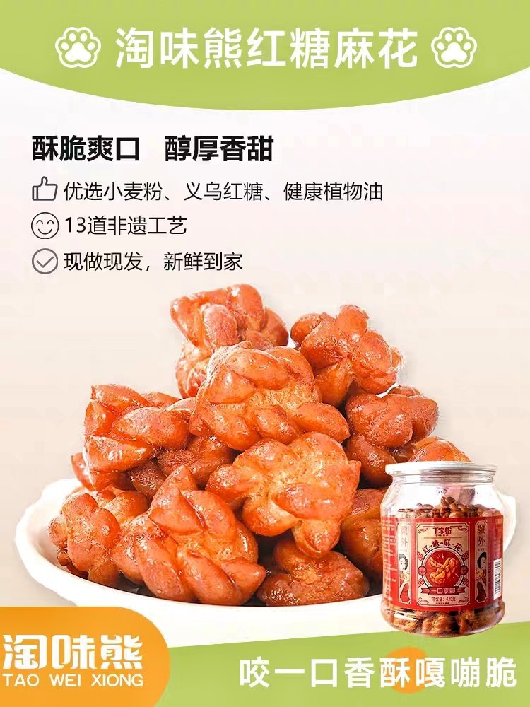 타오웨이 베어 흑설탕 트위스트 캔 420g 흑설탕 트위스트 옛날식 바삭바삭한 스낵 페이스트리 캐주얼 스낵스토어 가기