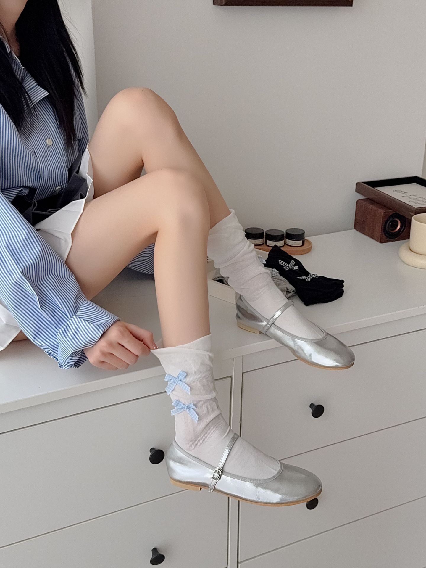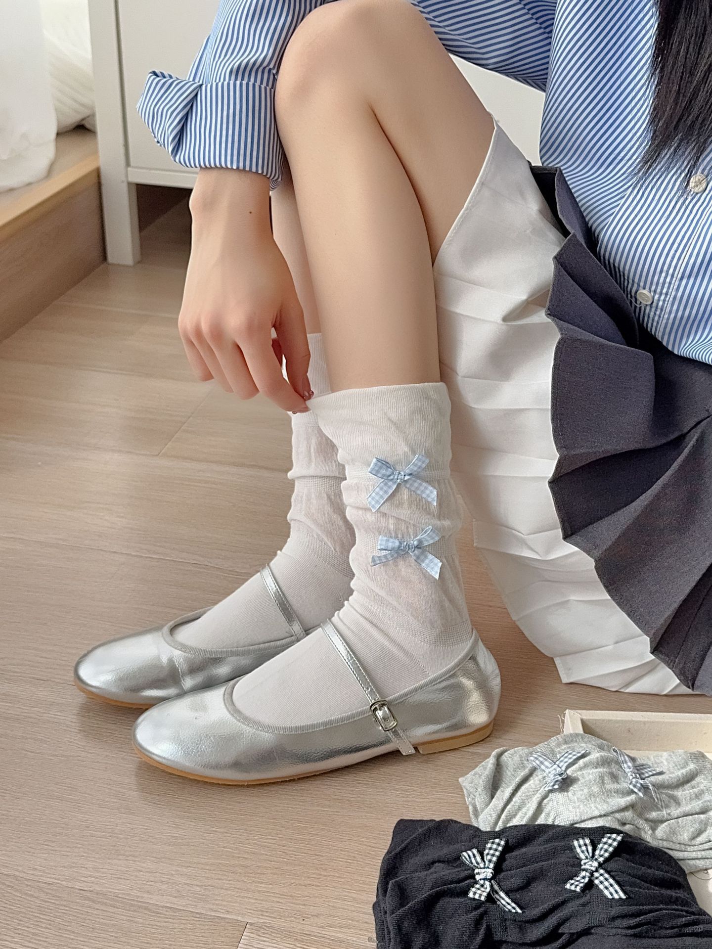 한국 인치 격자 무늬 작은 활 리본 솔리드 컬러 레이스 어린이를위한 미드 튜브 스택 양말 귀여운 로리타 양말스토어 가기