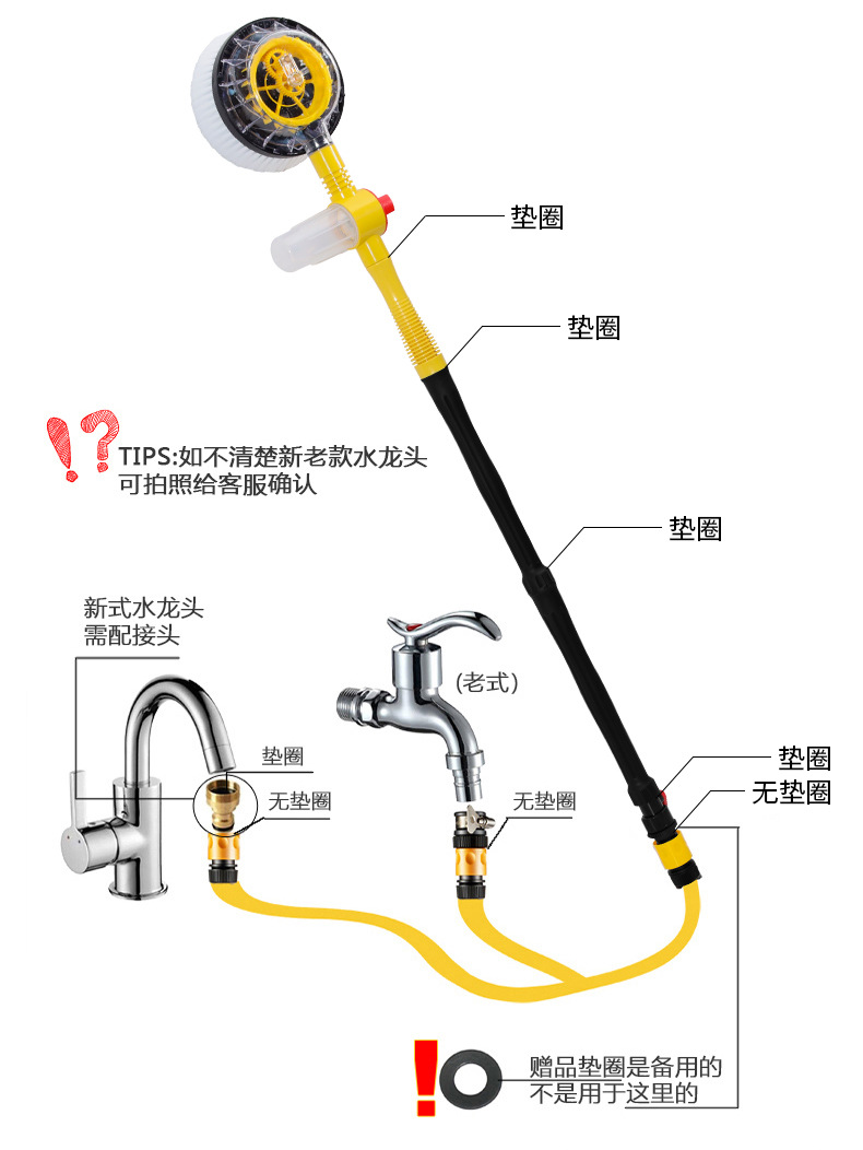 • 자동 회전 세차 브러시 세트 + 수도관 커넥터