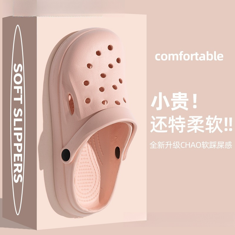 에바 새로운 구멍 신발 두꺼운 바닥 발가락 비치 신발 여름 새로운 복장 가정용 실내 샌들 및 여성용 슬리퍼 무료 배송스토어 가기