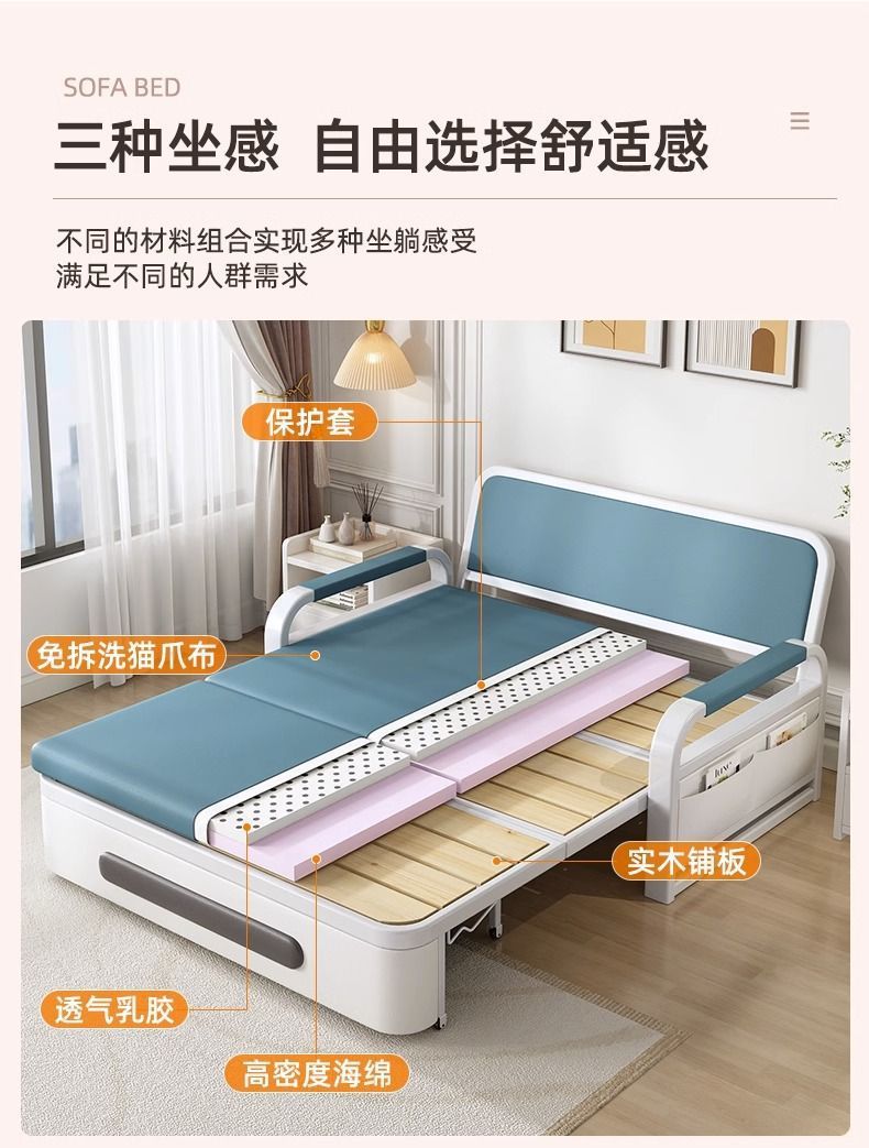 소파 침대 통합 이중 사용 접이식 거실 작은 아파트 인터넷 축하 발코니 다기능 확장 가능한 침대 2024 새로운 스타일스토어 가기