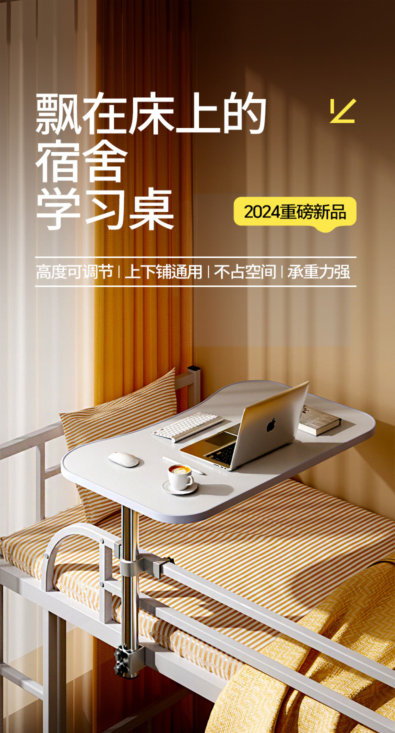 J ^ 침대 테이블 기숙사 교수형 측면 회전 가능한 대학생 책상 기숙사 노트북 리프팅 접이식스토어 가기