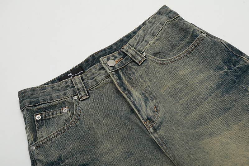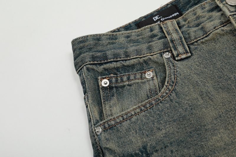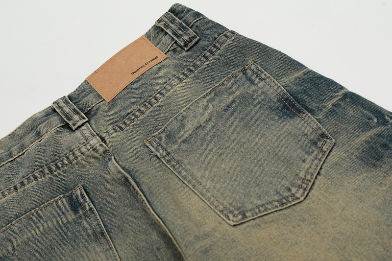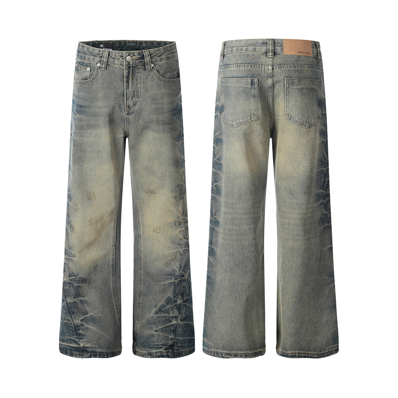 DC G6659 미국 빈티지 세탁 남성용 넥타이 플라워 청바지 느슨한 올 매치 마이크로 스컬 스트레이트 캐주얼 바지스토어 가기