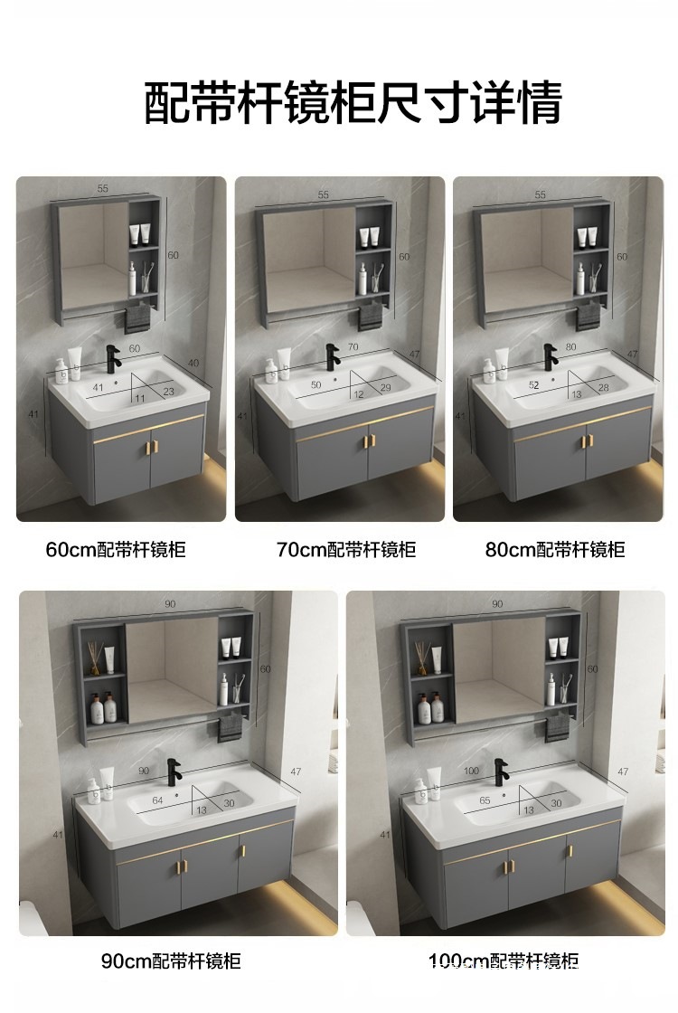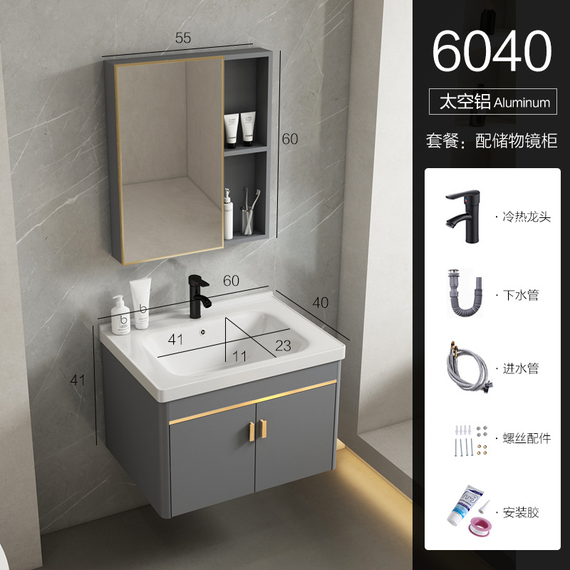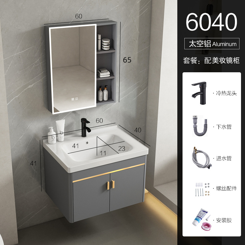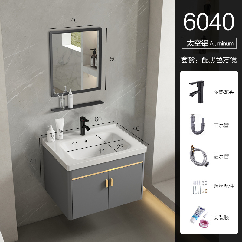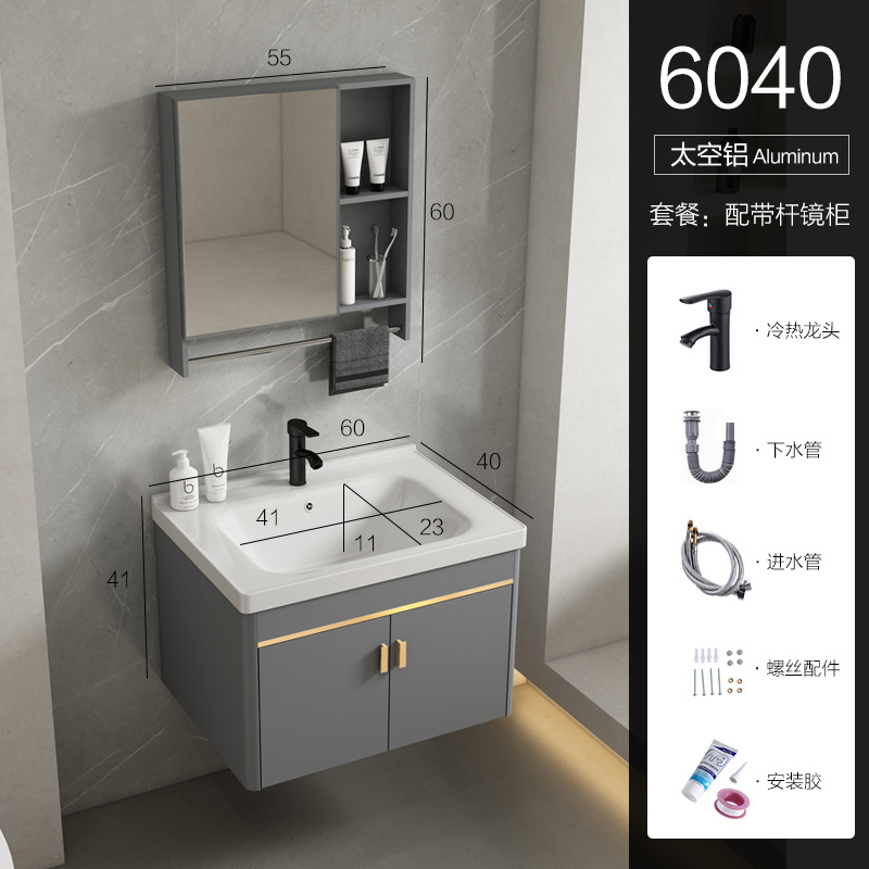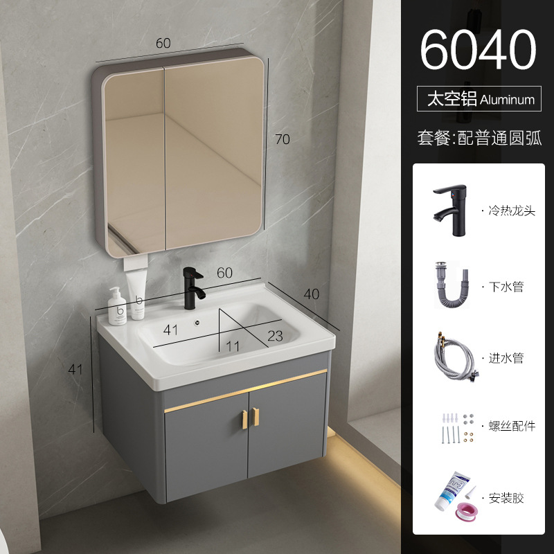 • 회색 평면 세면대 캐비닛 60개 전체 세트 + 일반 아크 거울 캐비닛 [폭 40]