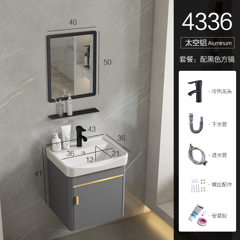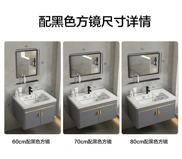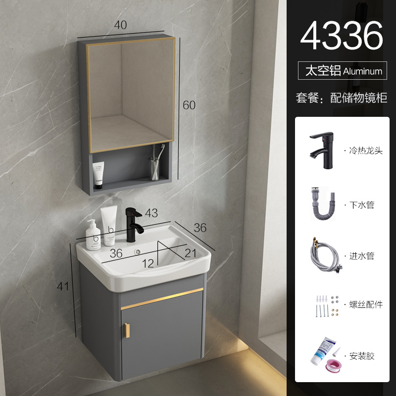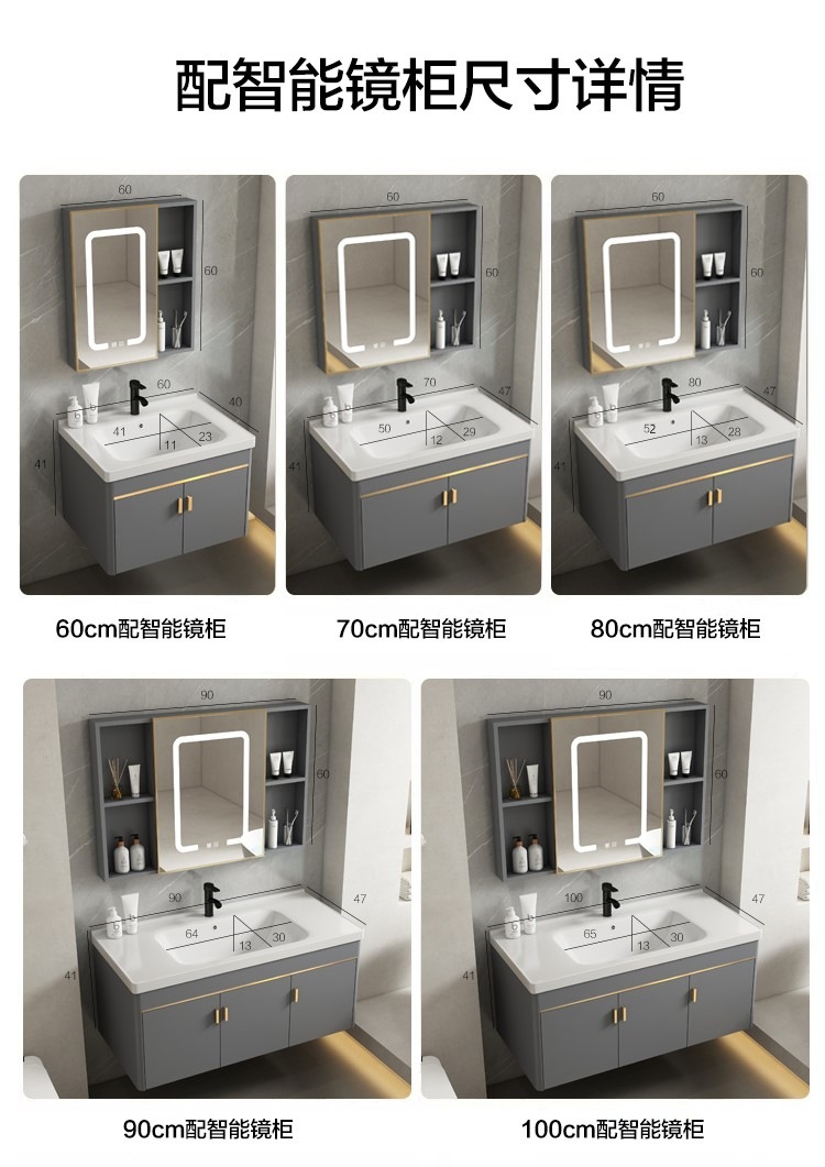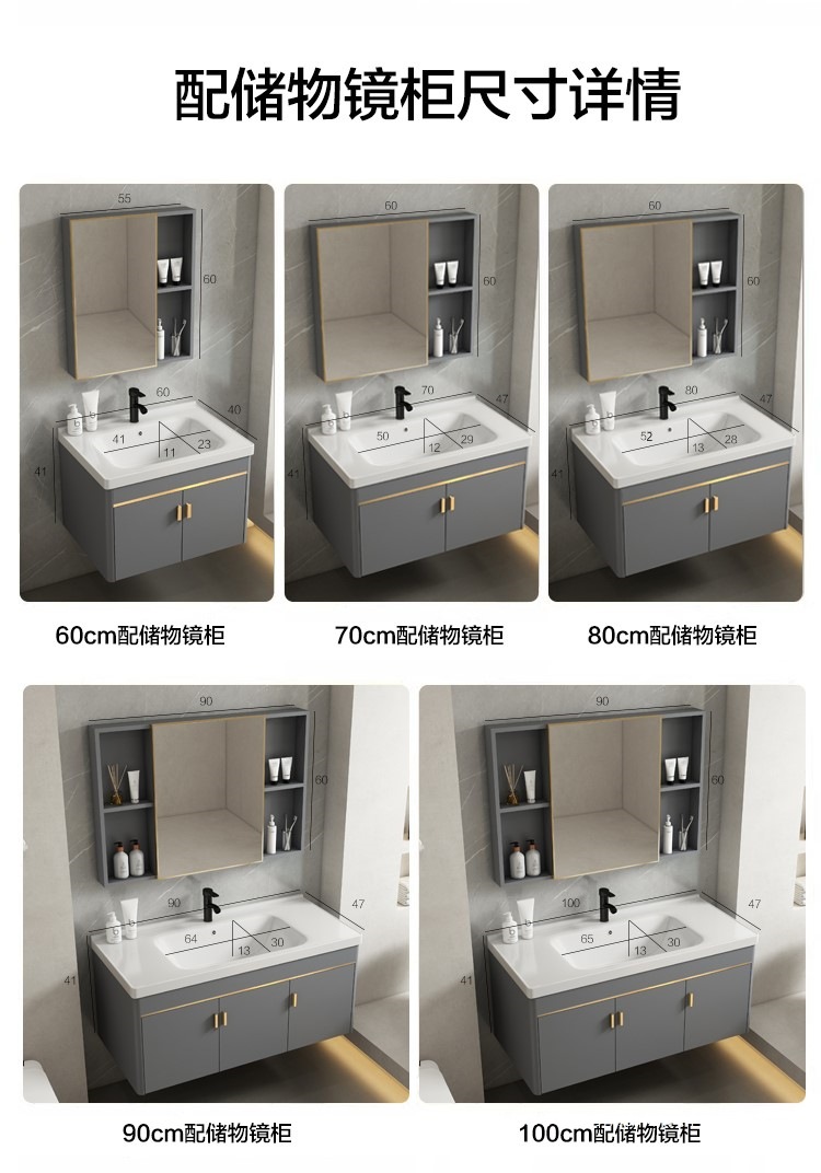• 회색 평면 세면대 캐비닛 60개 전체 세트 + 일반 아크 거울 캐비닛 [폭 40]