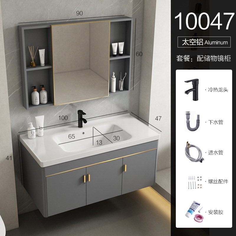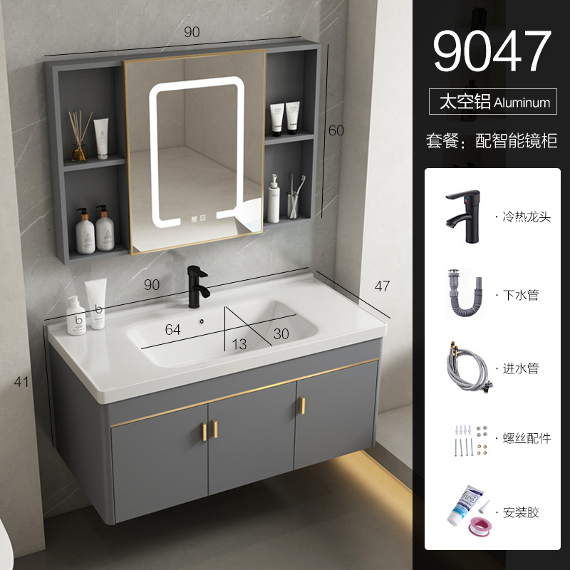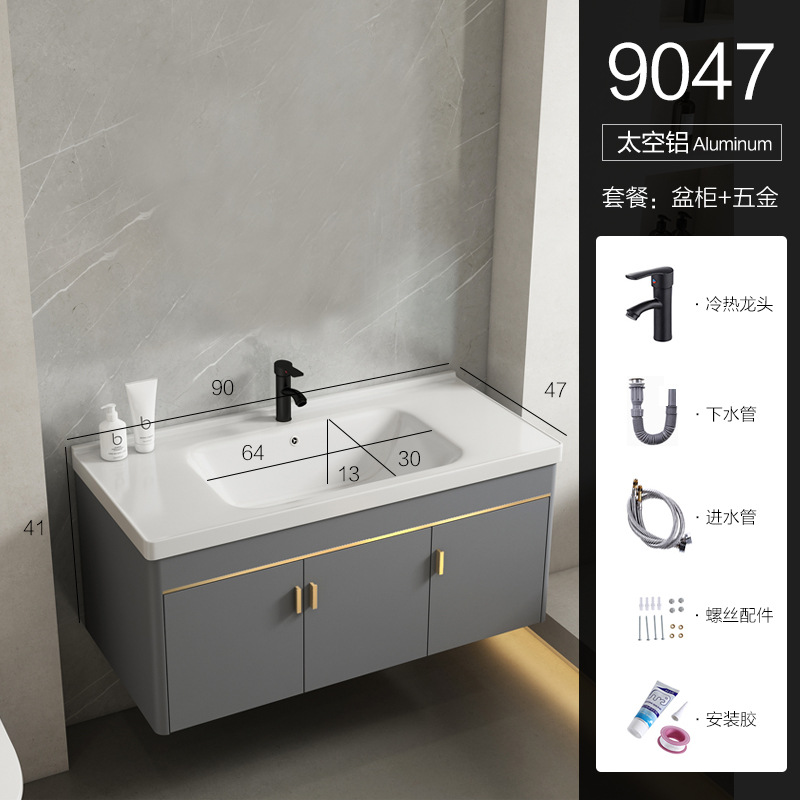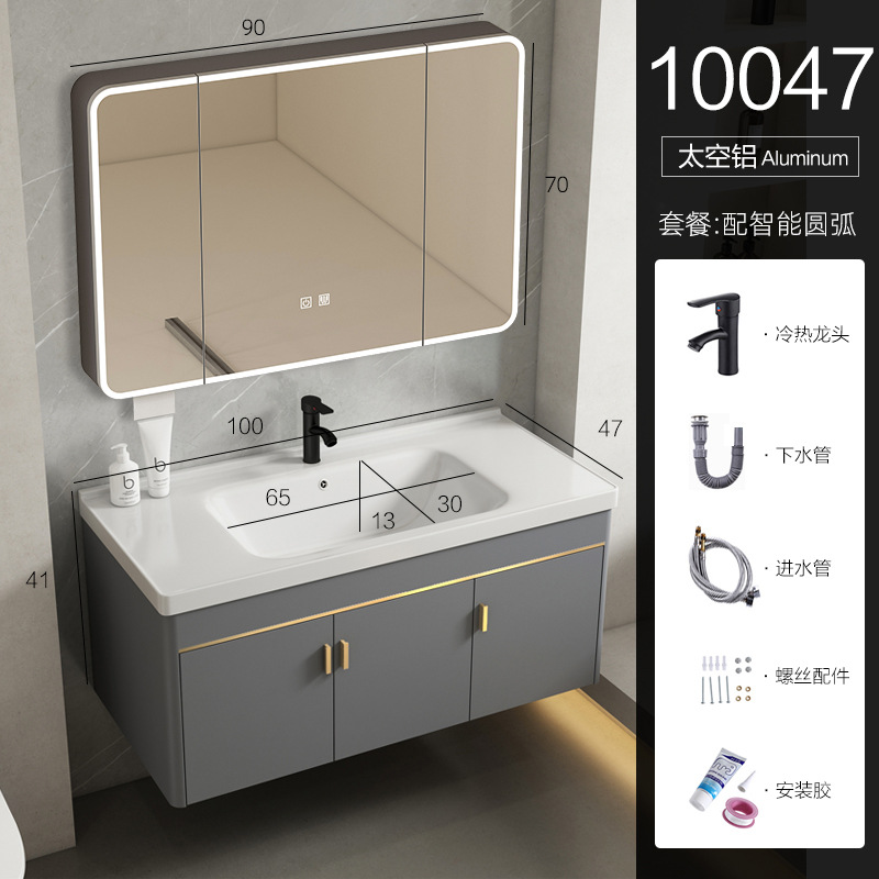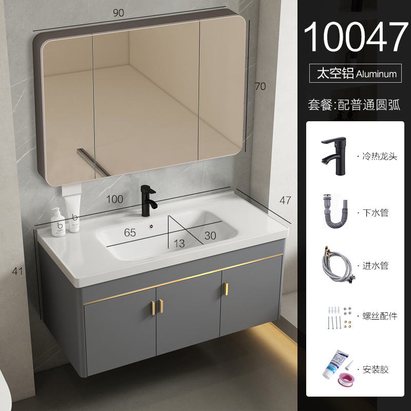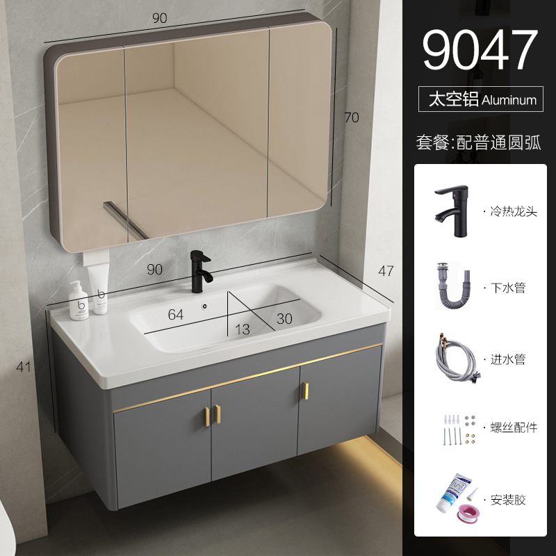 • 90 회색 평면 세면대 캐비닛 전체 세트 + 일반 아크 거울 캐비닛 [너비 48]