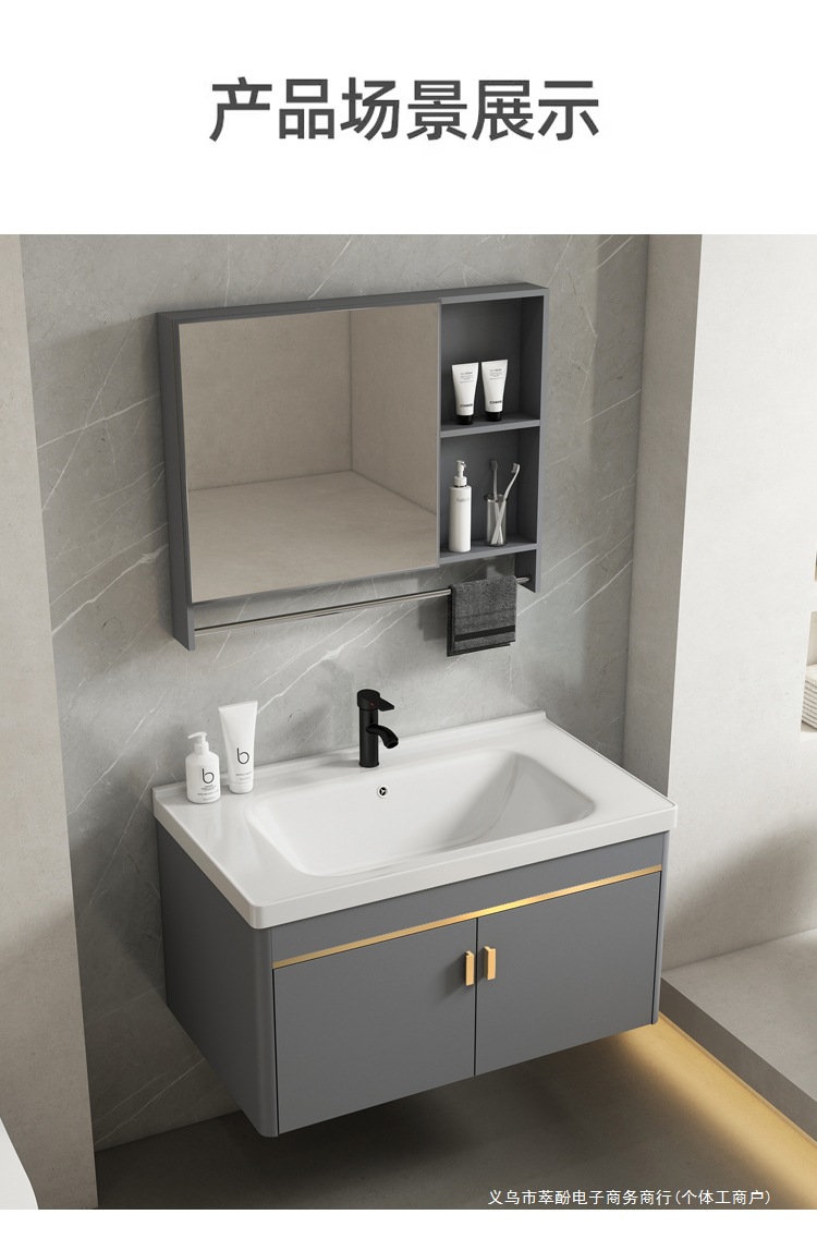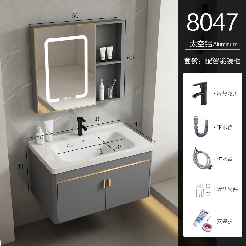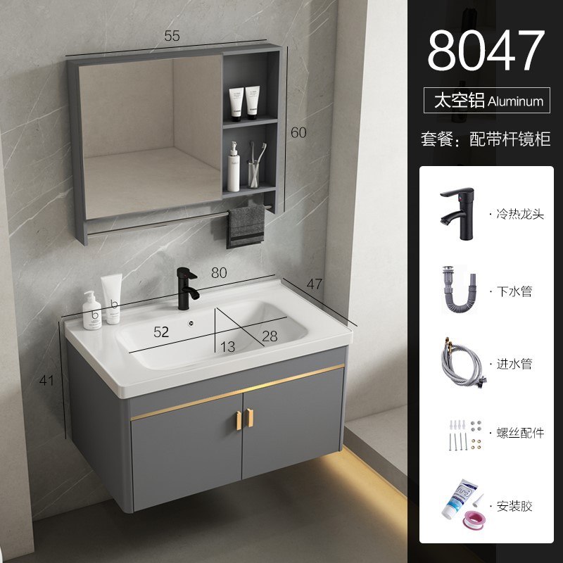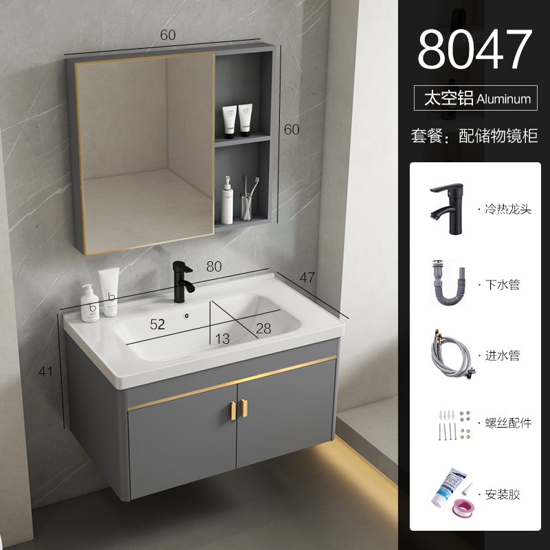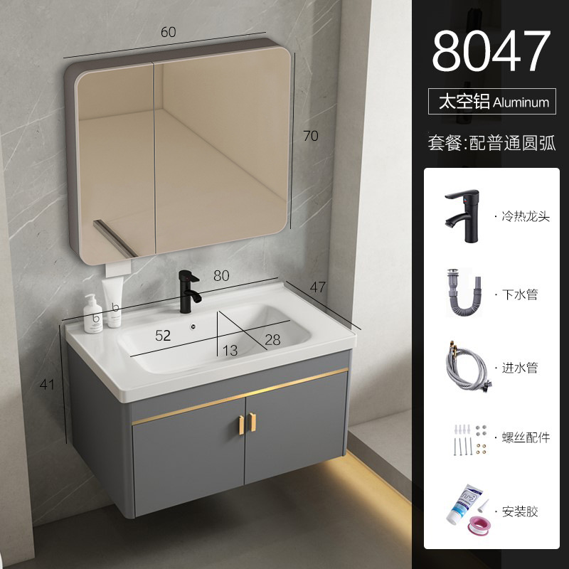• 80 회색 평면 세면대 캐비닛 전체 세트 + 일반 아크 거울 캐비닛 [너비 48]