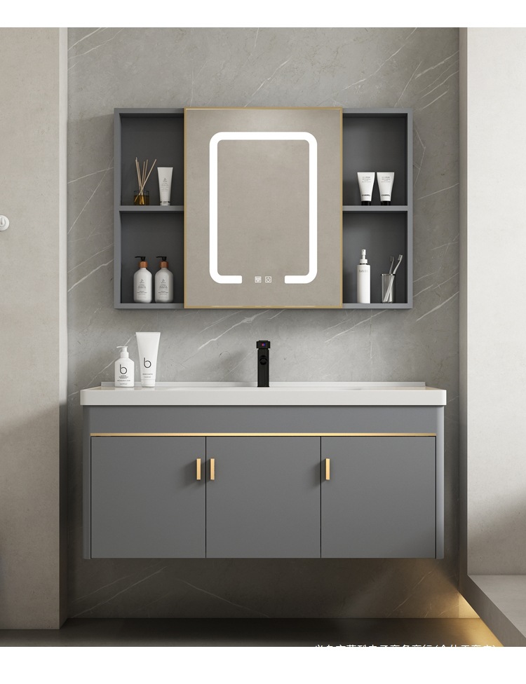 • 90 회색 평면 세면대 캐비닛 전체 세트 + 지능형 아크 거울 캐비닛 [폭 48] 뷰티 + 조명