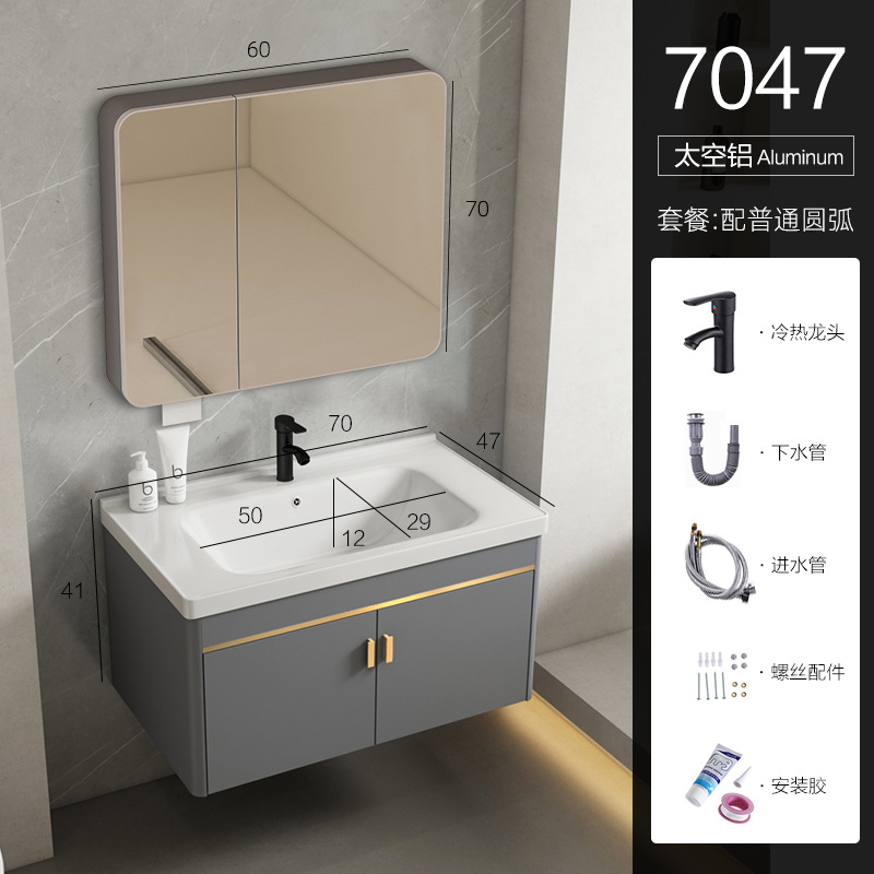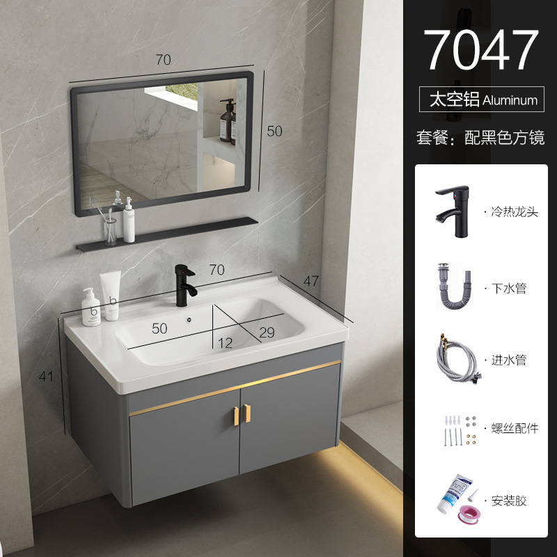 • 70 회색 평면 세면대 캐비닛 전체 세트 + 일반 아크 거울 캐비닛 [너비 48]