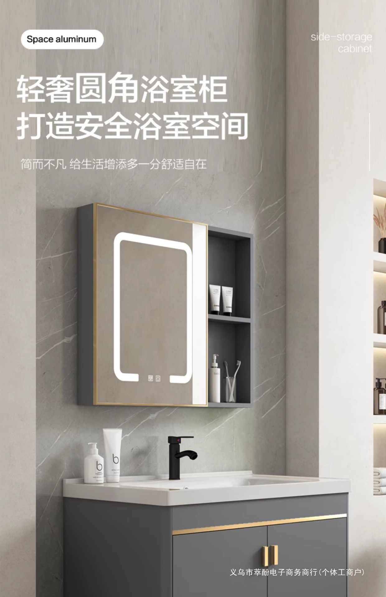• 회색 평면 세면대 캐비닛 100개 전체 세트 + 일반 아크 거울 캐비닛 [너비 48]