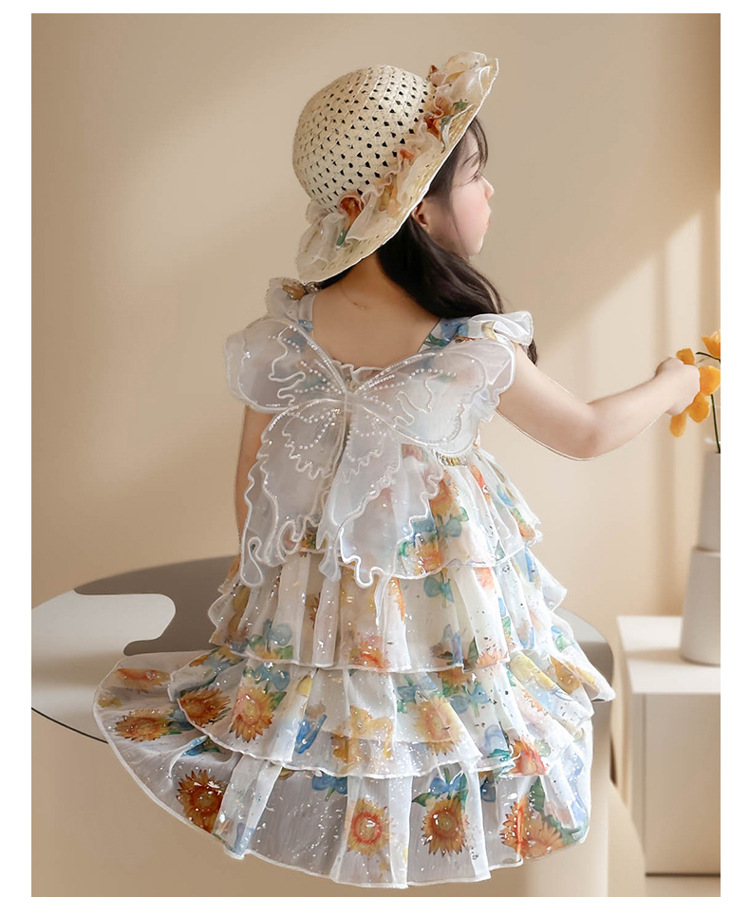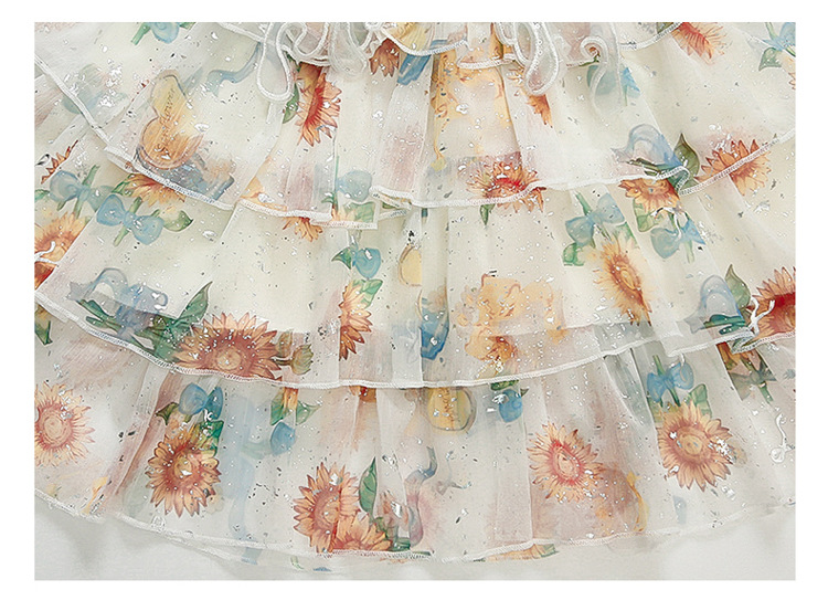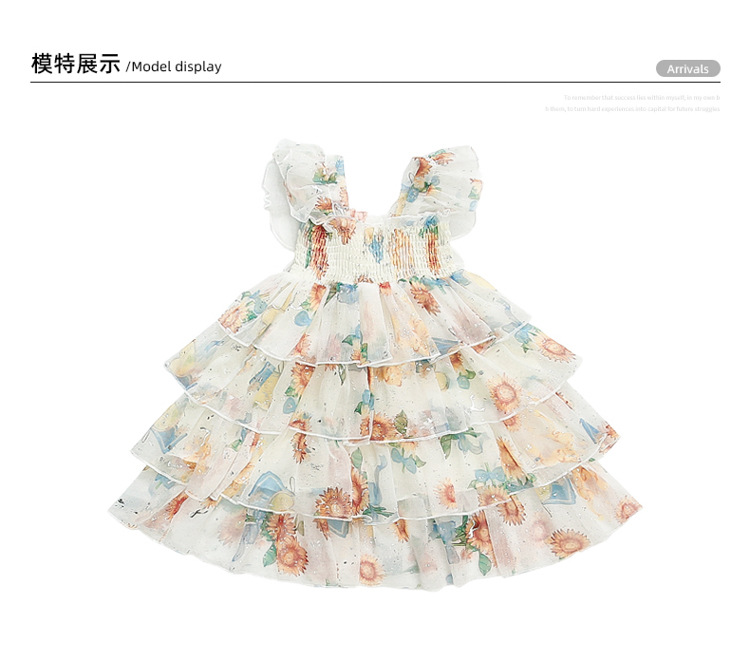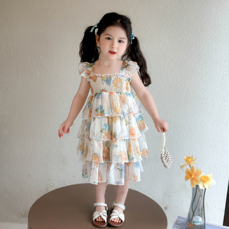 여자 여름 슬링 원피스 2025 새로운 어린이 케이크 치마 스타일 공주 치마 아기 여름 해변 치마
