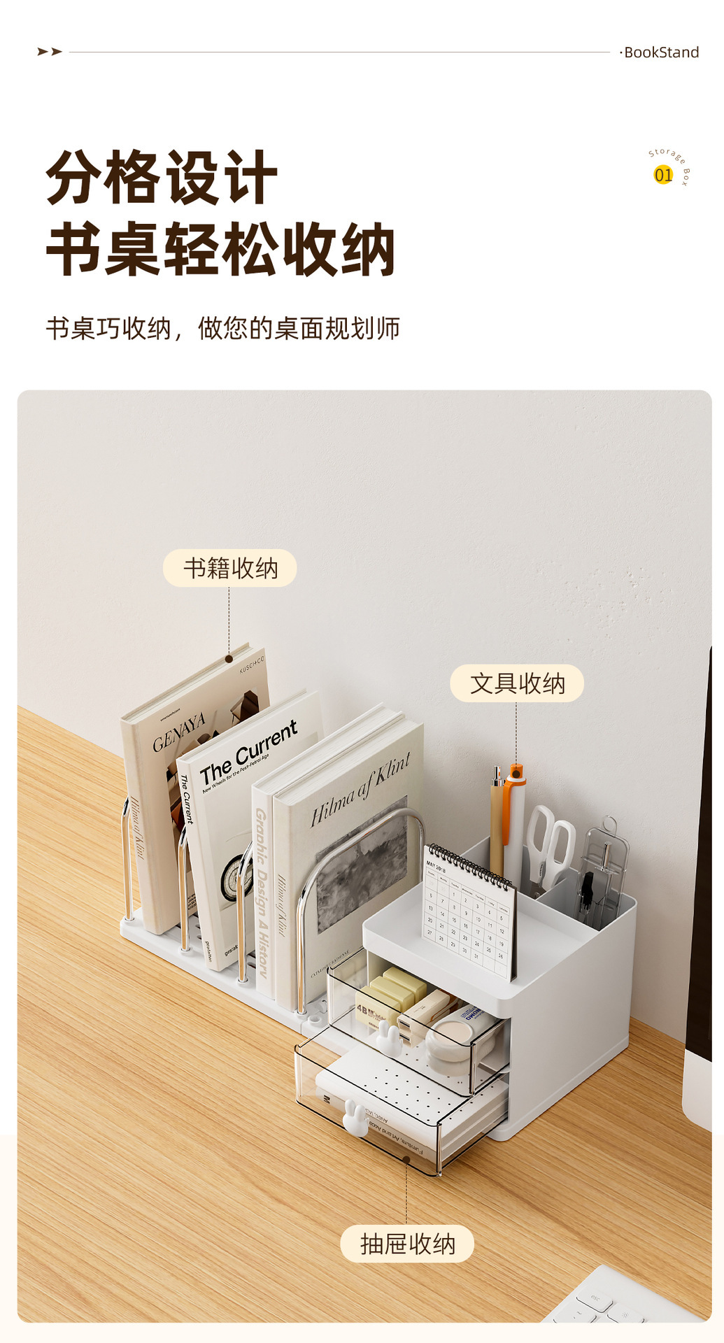 产品名称:塑钢书立收纳盒