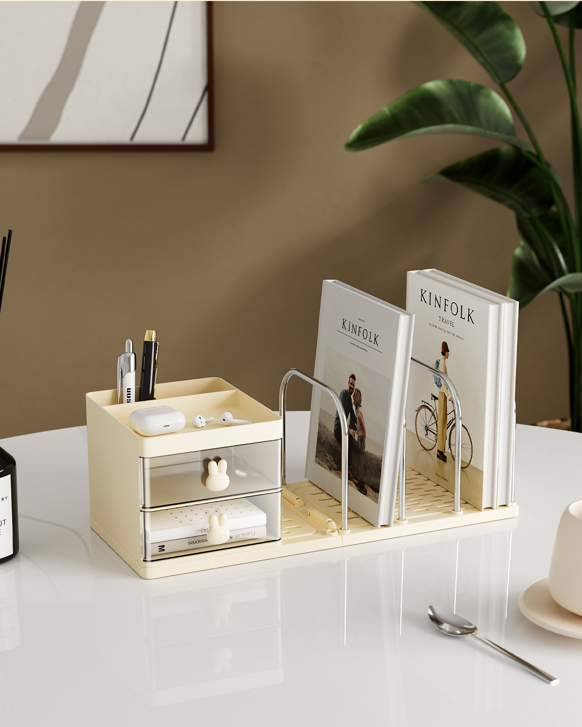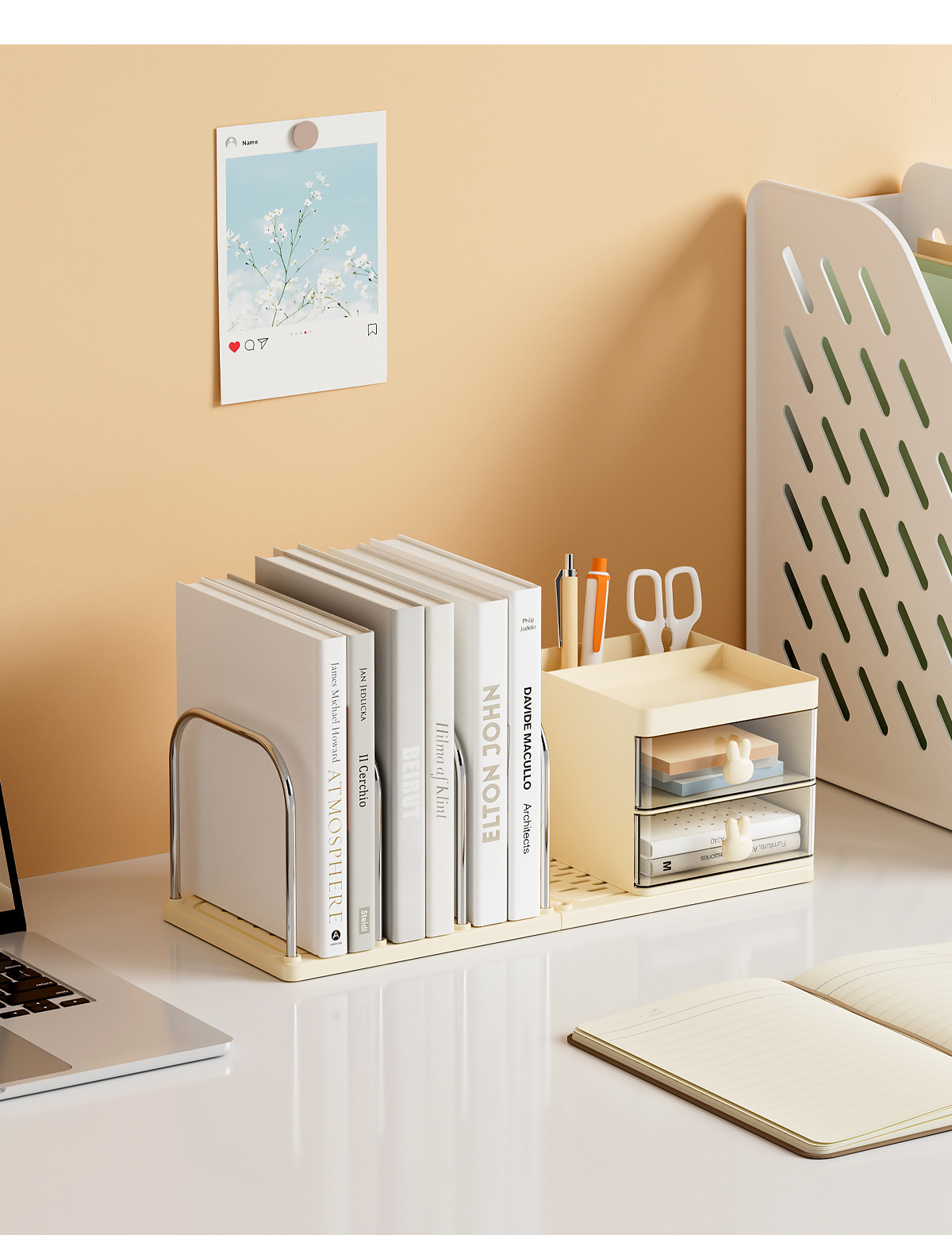 • JW2130 크림옐로우(플라스틱과 스틸 조합 북엔드 수납함)