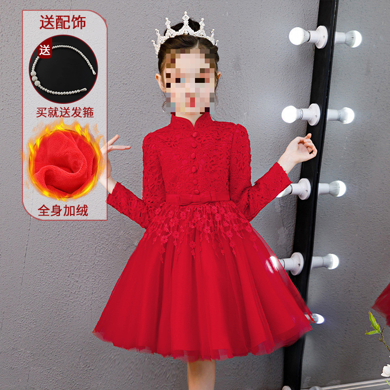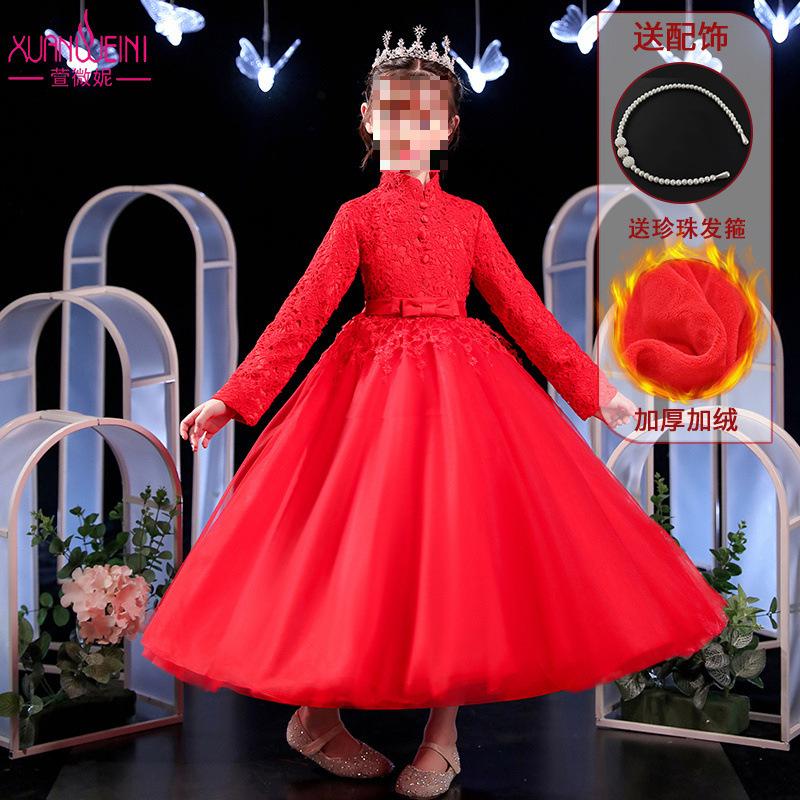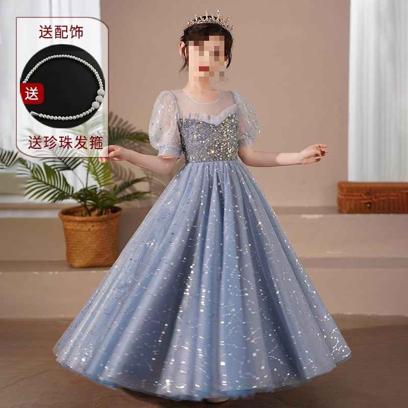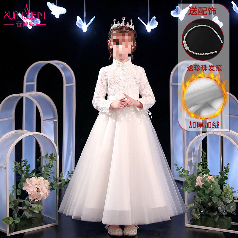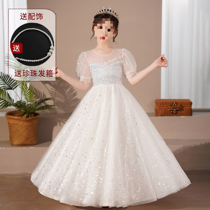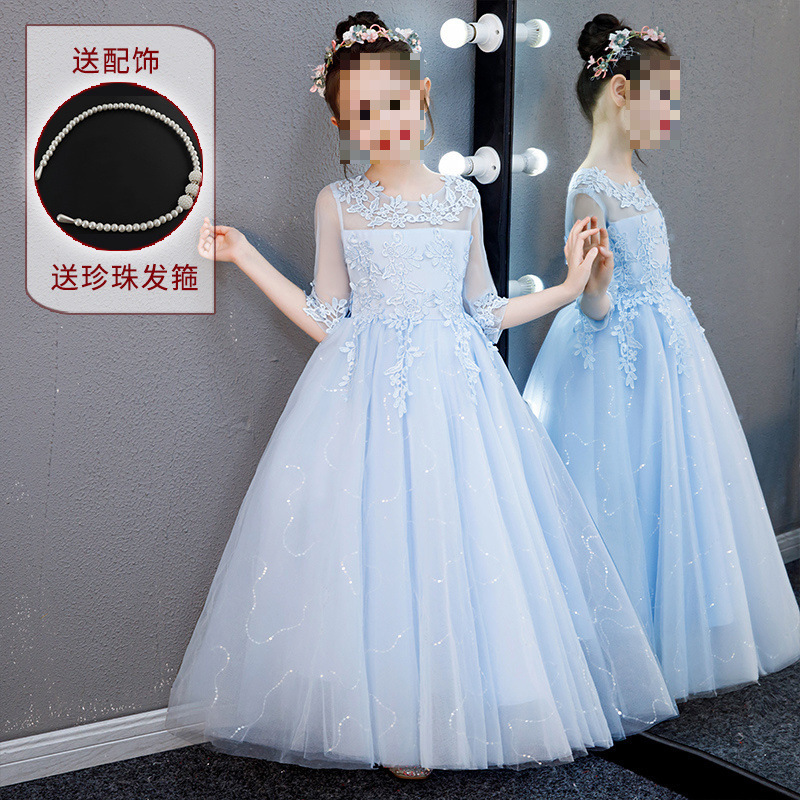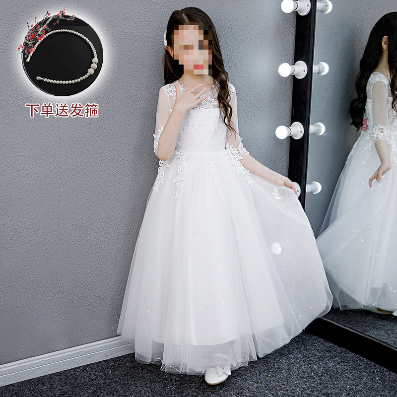 어린이 호스트 원피스 소녀의 봄과 가을 소녀 공주 원피스 피아노 공연 원피스 서양식 봄 원피스 공연 원피스 베일 원피스 봄