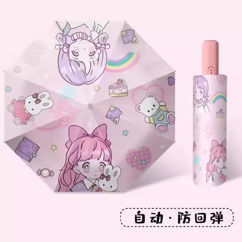 오목한 볼록한 남자 만화 우산 유치원 학생 소년과 소녀는 학교 특수 자동 햇볕이 잘 드는 우산 폭발에 간다!스토어 가기