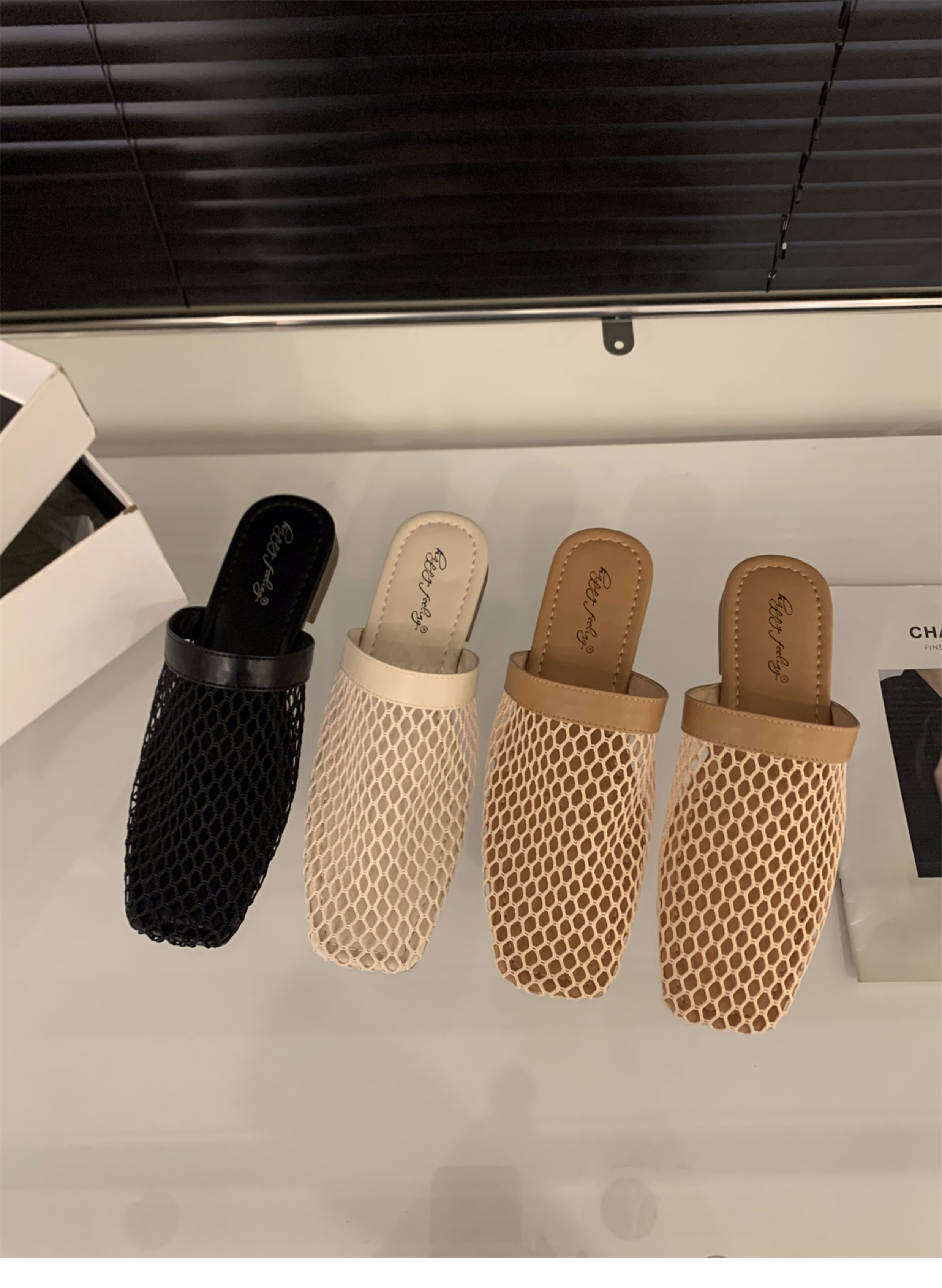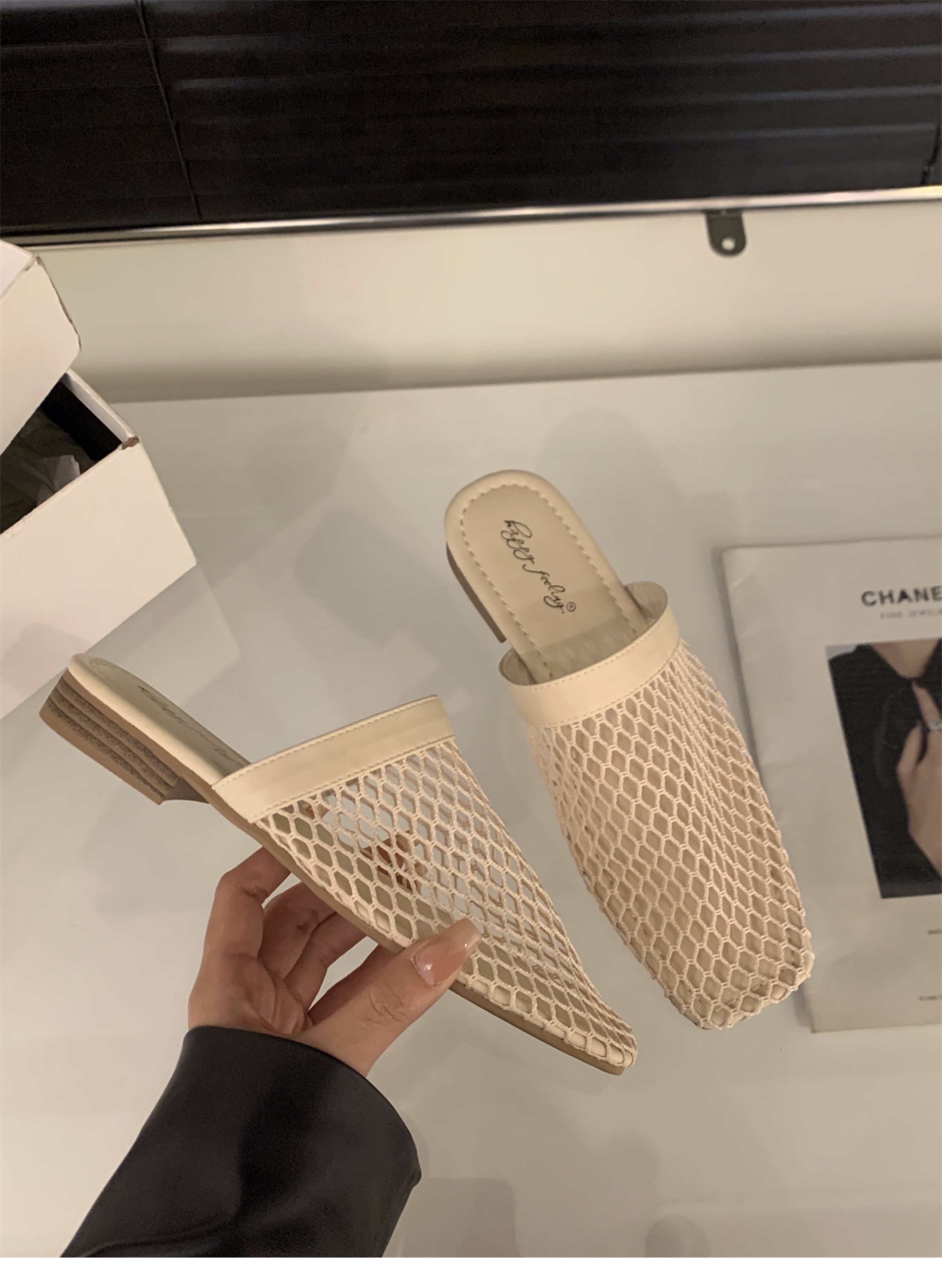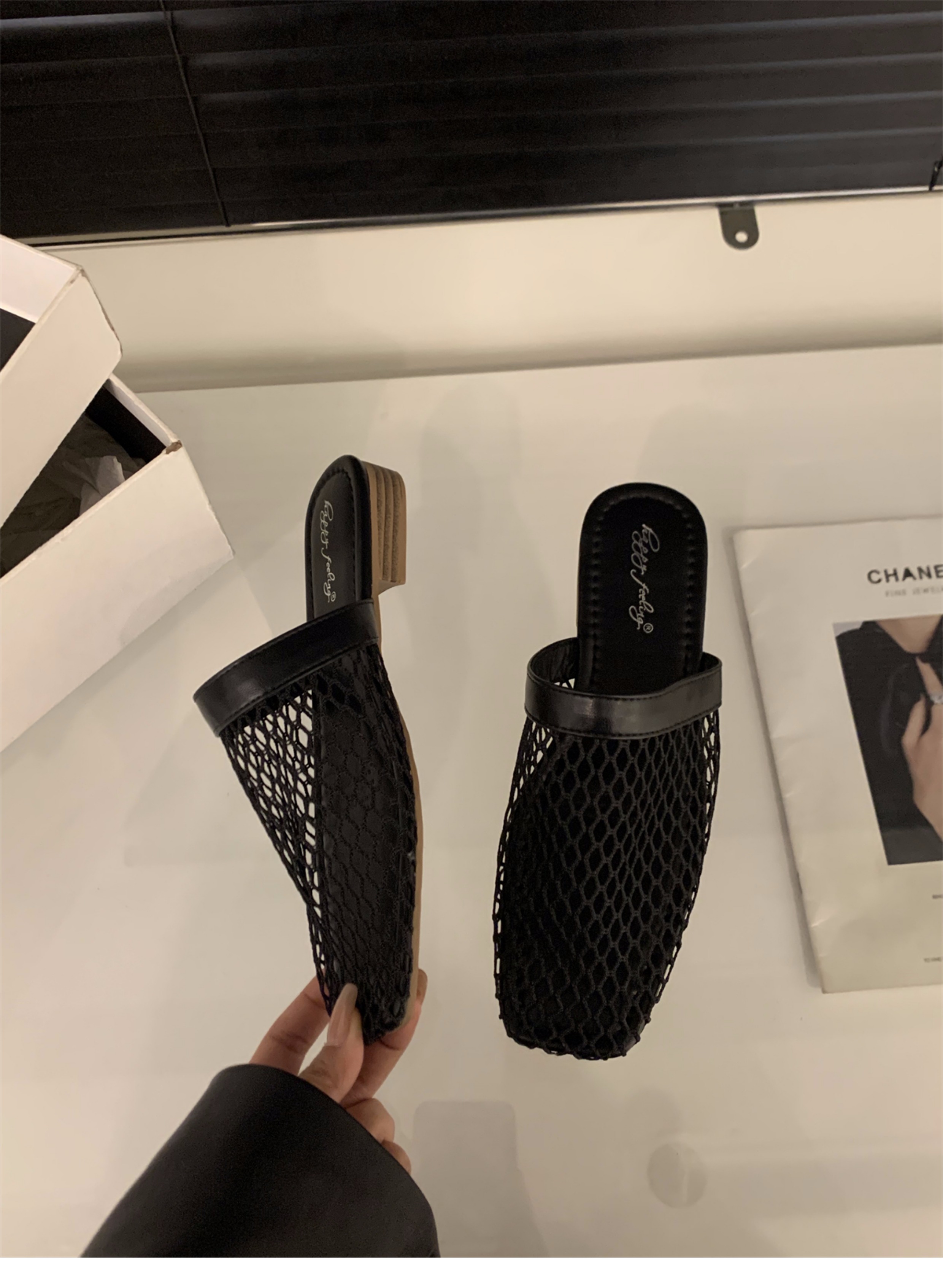 Chunky Heel 우아한 Baotou 하프 슬리퍼 여성 신발 외부 착용 2025 새로운 봄과 여름 메쉬 통기성 반지지 샌들 및 슬리퍼