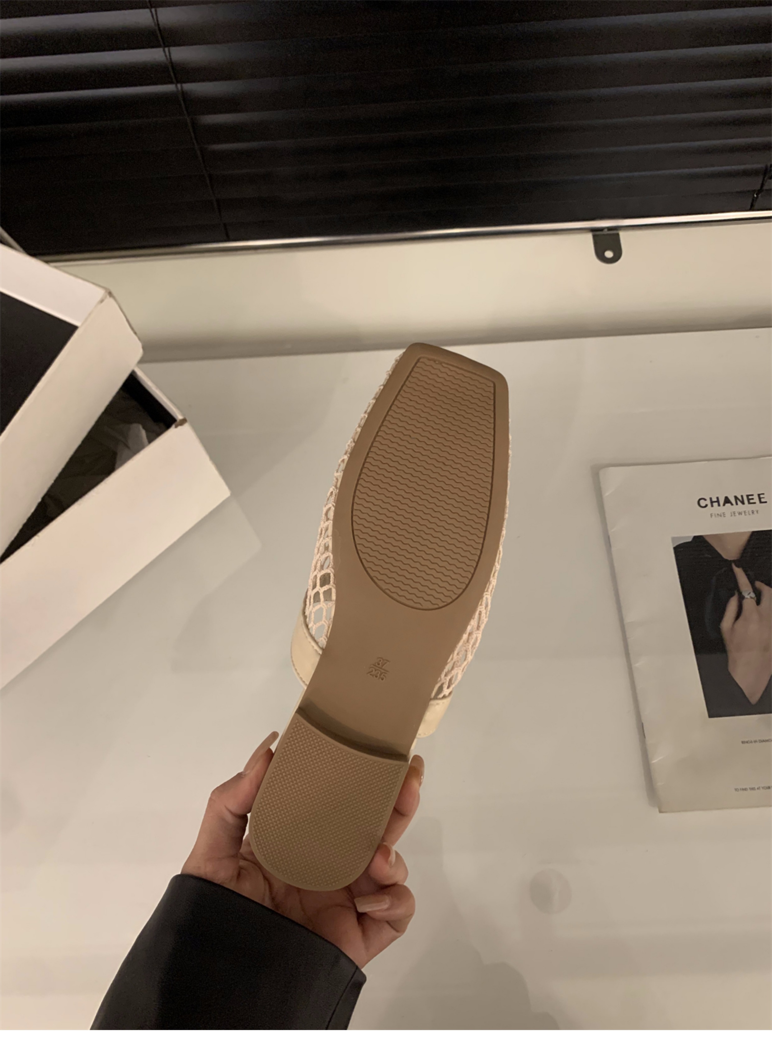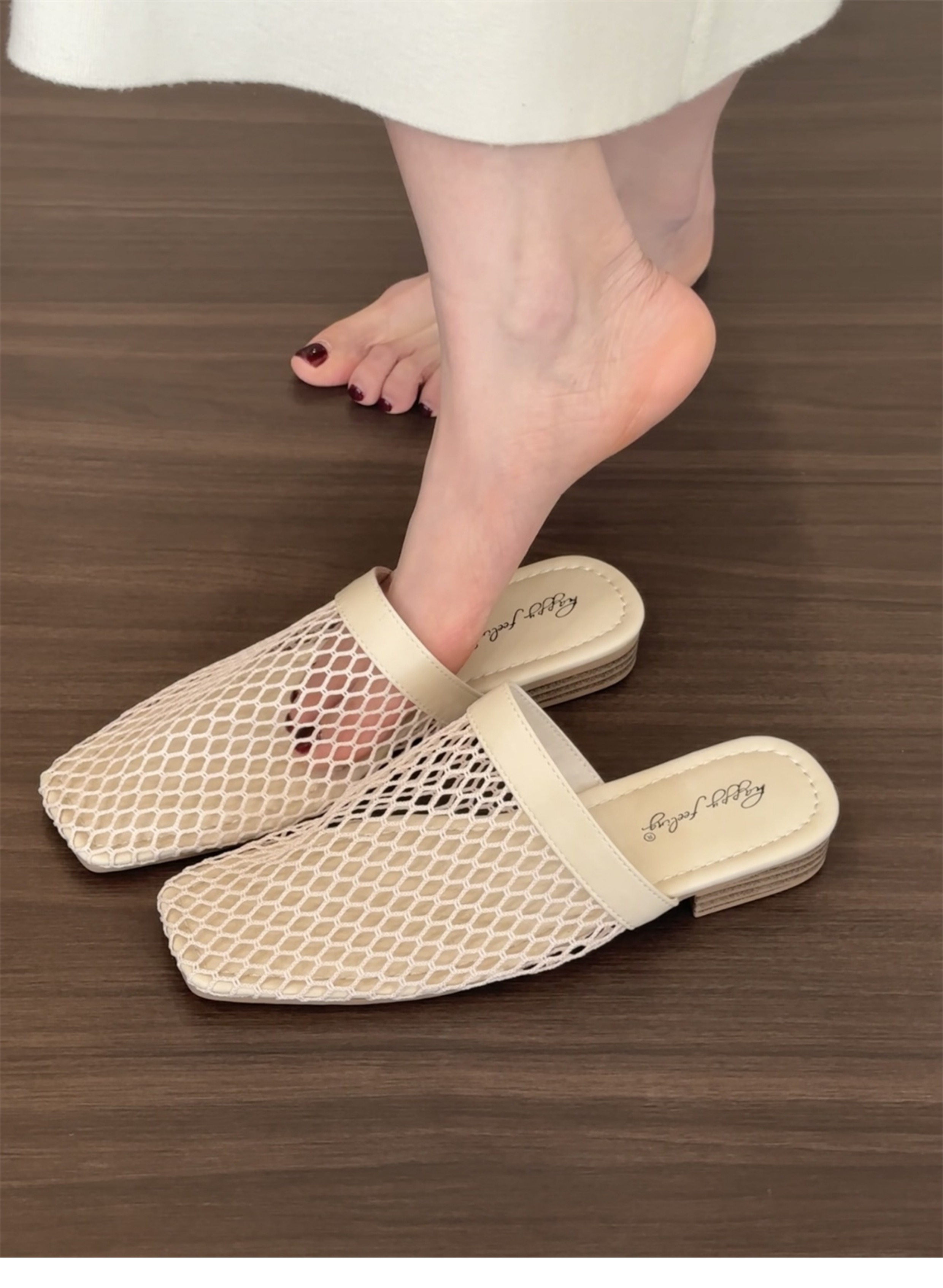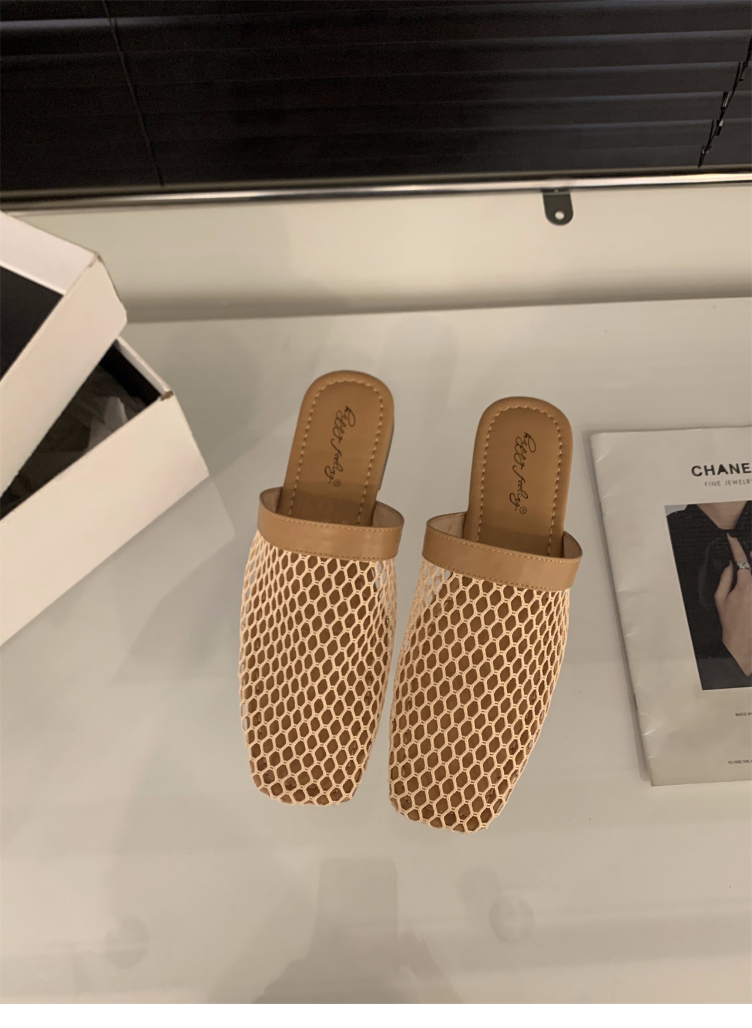 Chunky Heel 우아한 Baotou 하프 슬리퍼 여성 신발 외부 착용 2025 새로운 봄과 여름 메쉬 통기성 반지지 샌들 및 슬리퍼