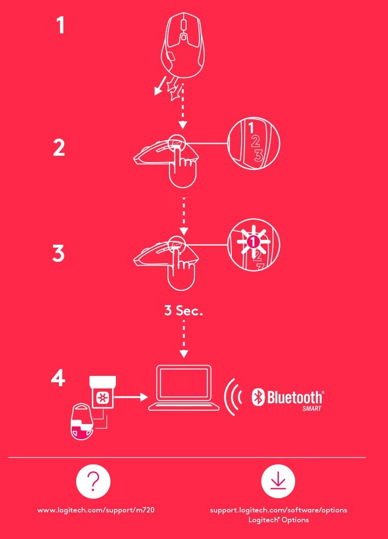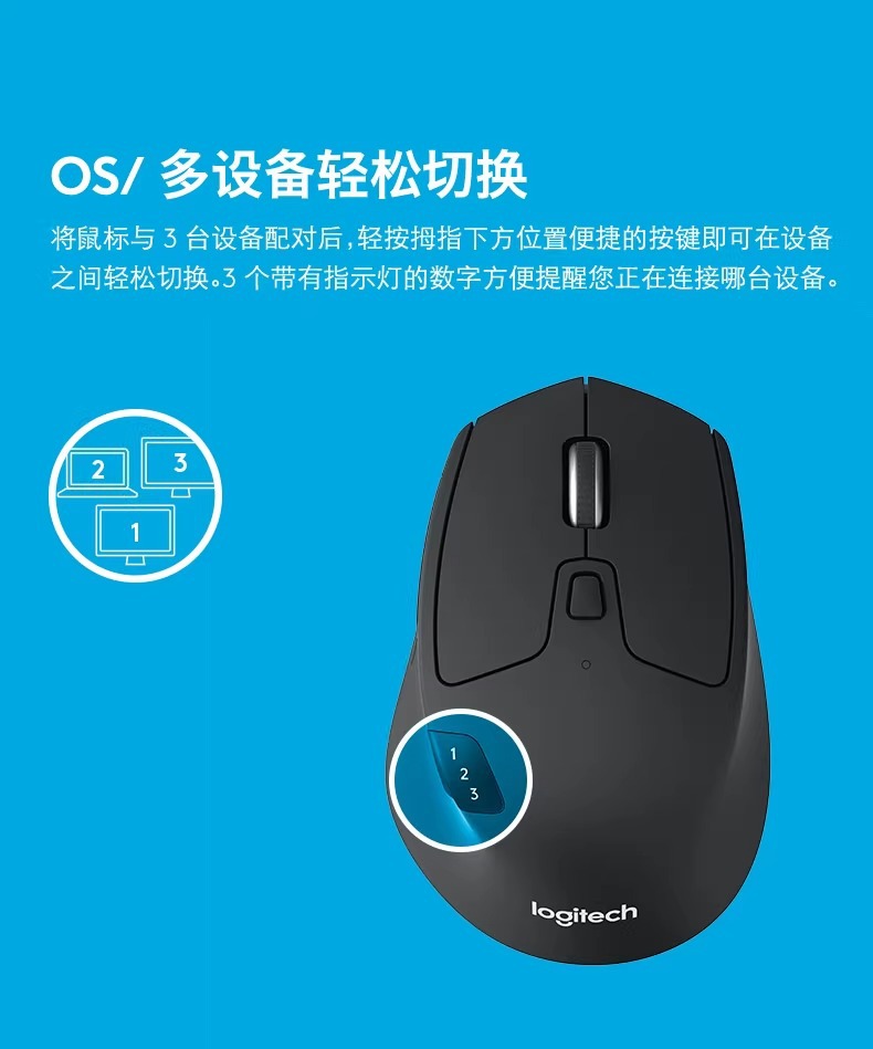 로지텍 로지텍 M720 블루투스 울리안 듀얼 모드 무선 마우스 멀티 장치 사이드 버튼 편안한 대형 핸드 마우스스토어 가기