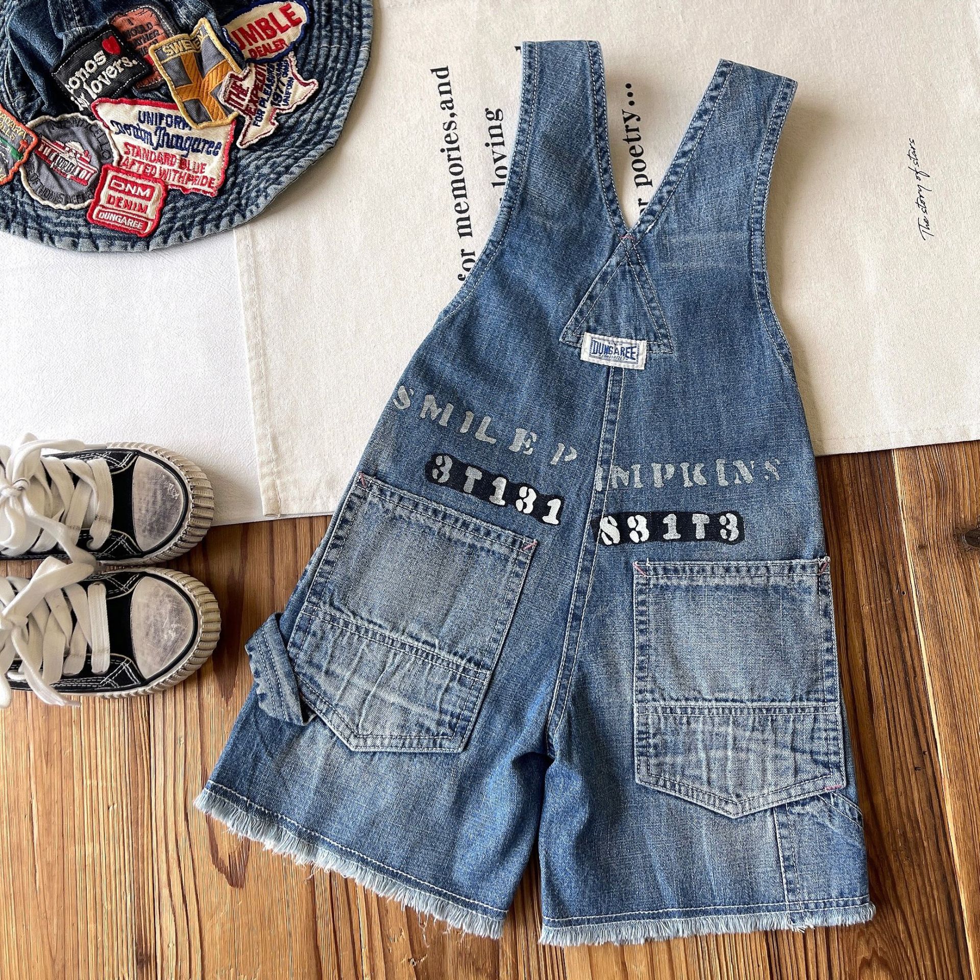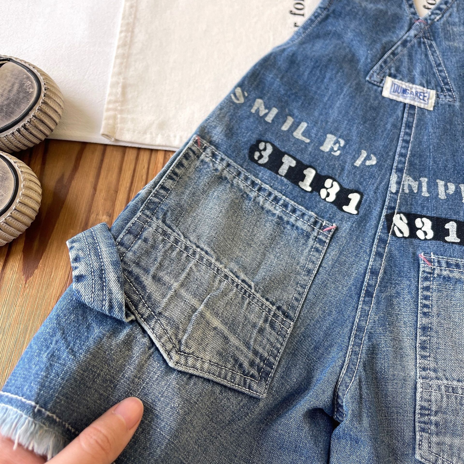 [재고] 일본 중세 아동복 DD 어린이 중공업 JUE 버전 바지 사계절 데님 멜빵 반바지