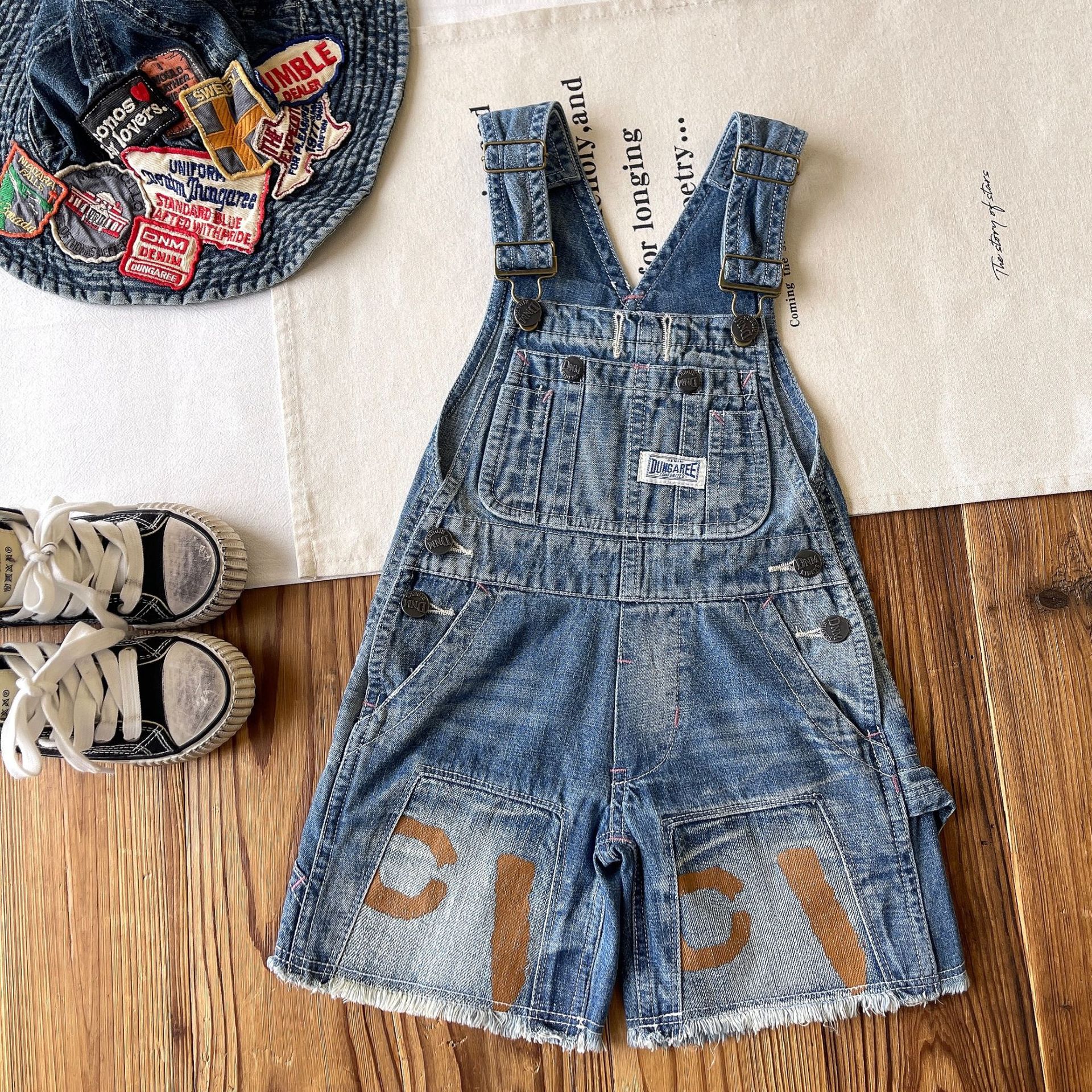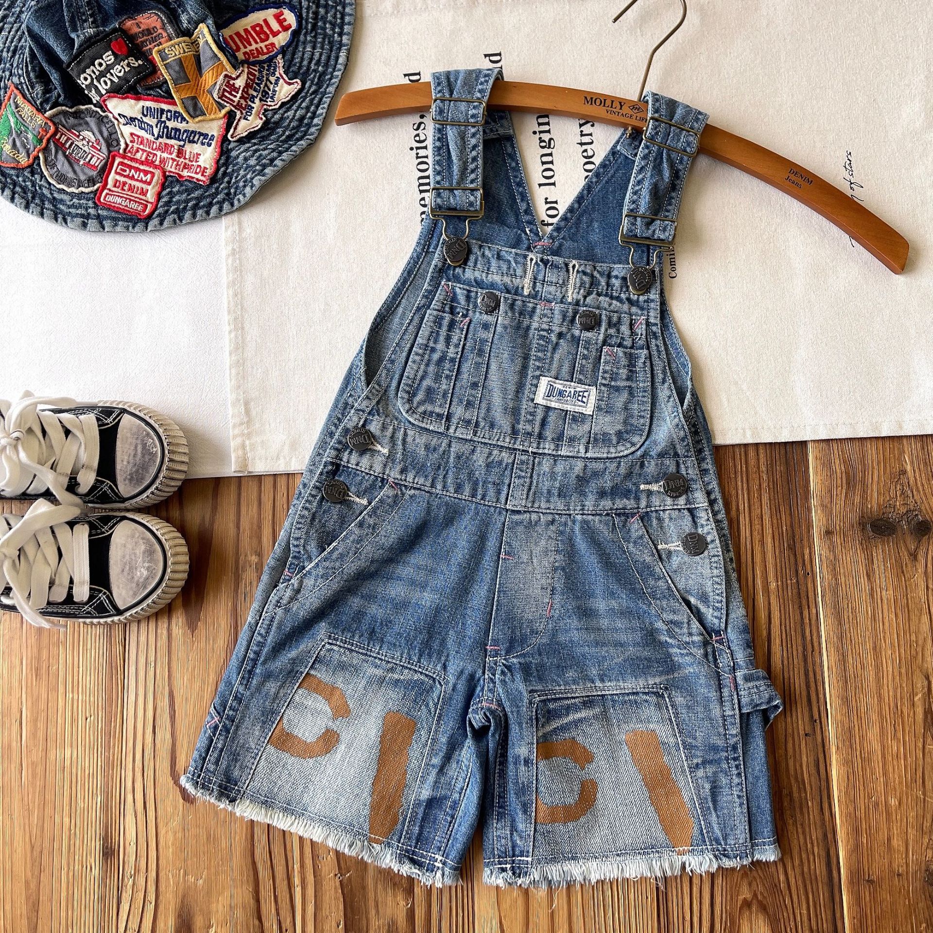 [재고] 일본 중세 아동복 DD 어린이 중공업 JUE 버전 바지 사계절 데님 멜빵 반바지스토어 가기