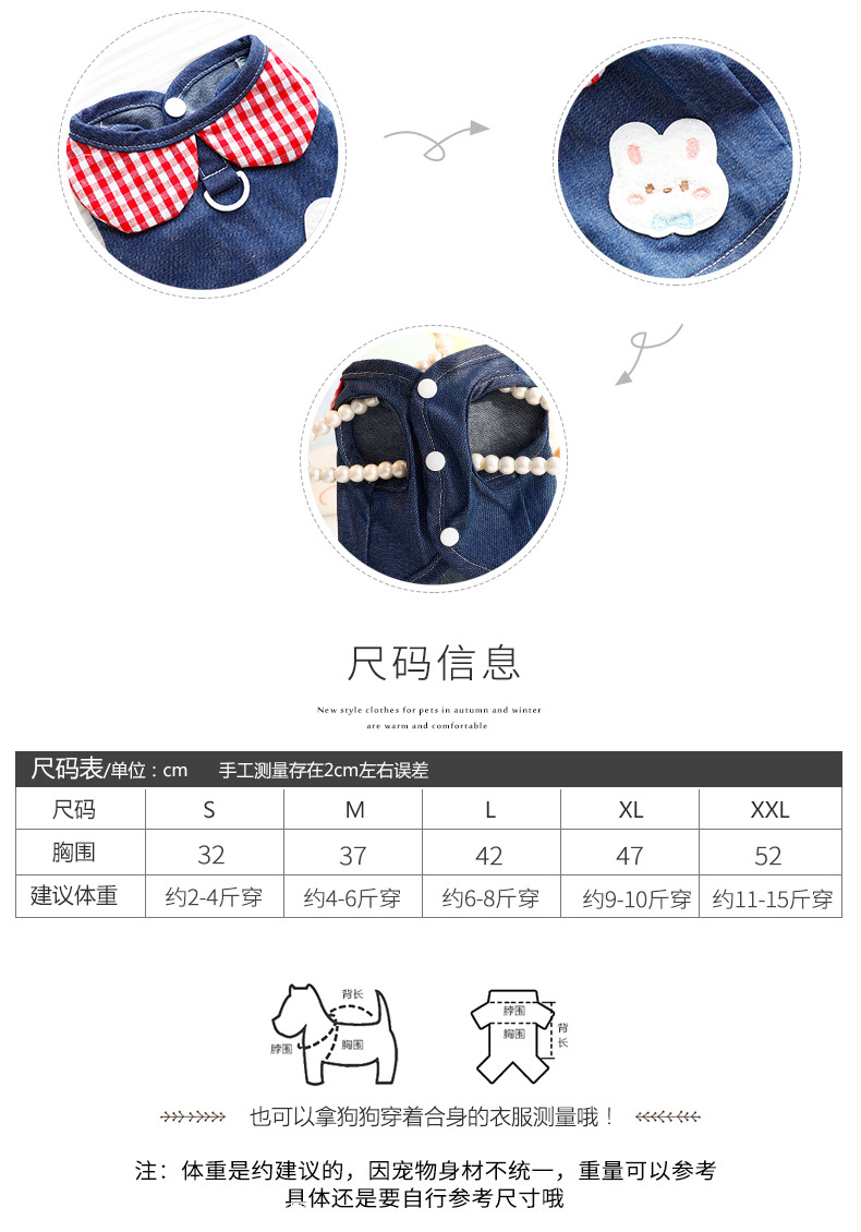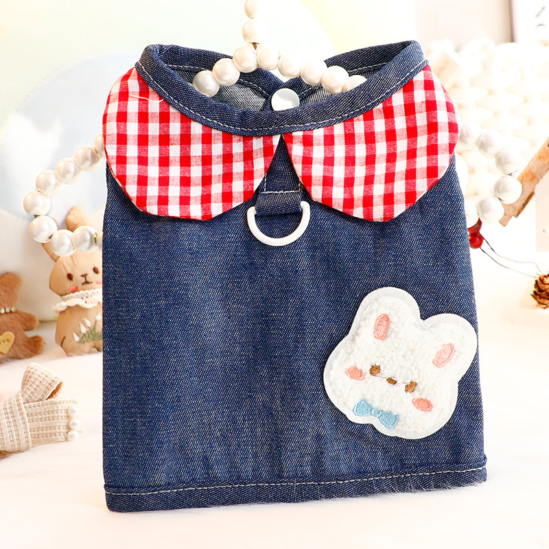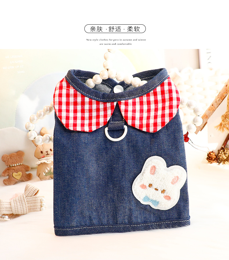 개 옷 봄과 여름 얇은 고양이 귀여운 데님 인형 칼라 가슴 스커트 작은 개 테디 애완 동물 6693 착용스토어 가기