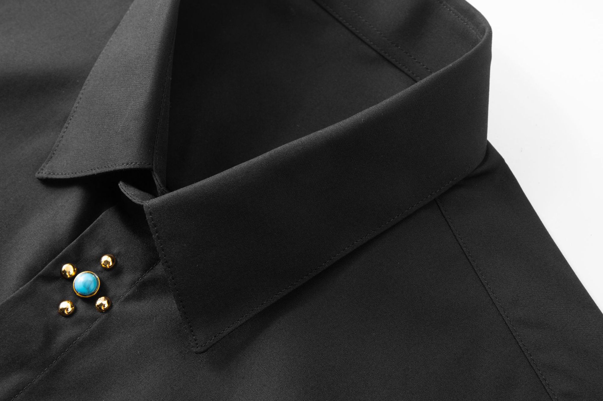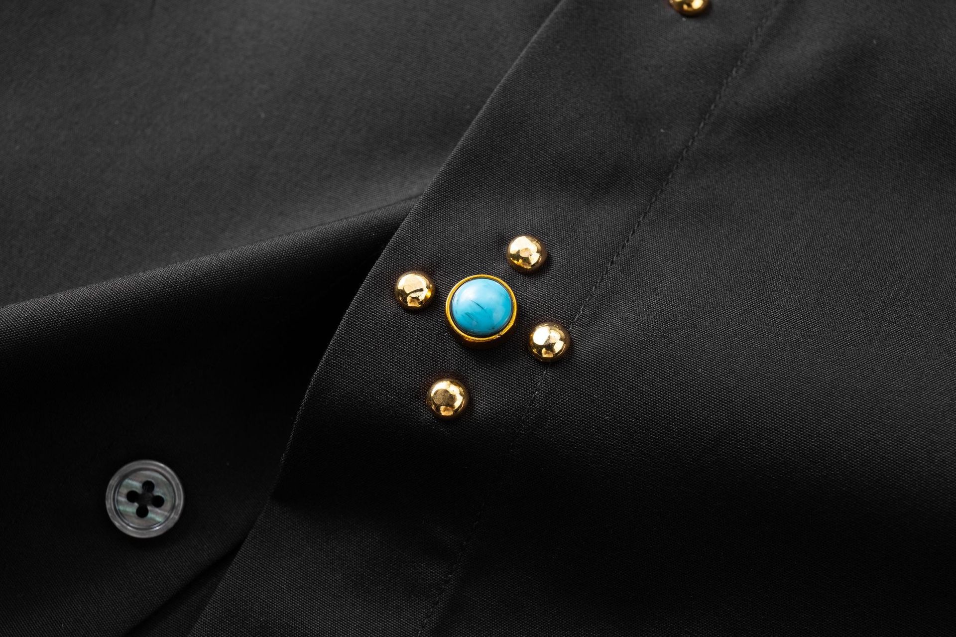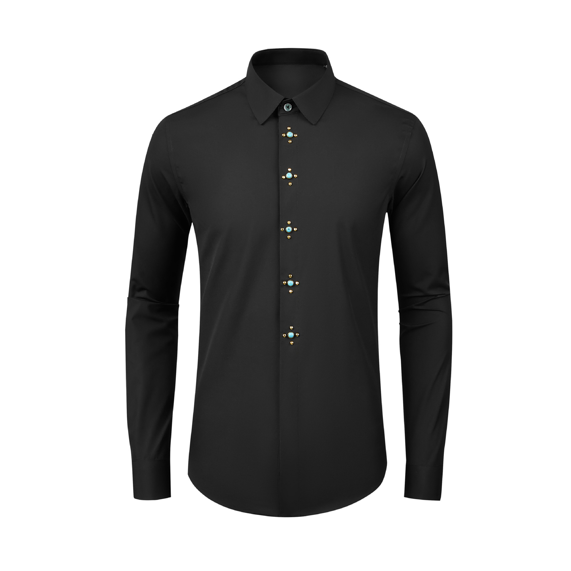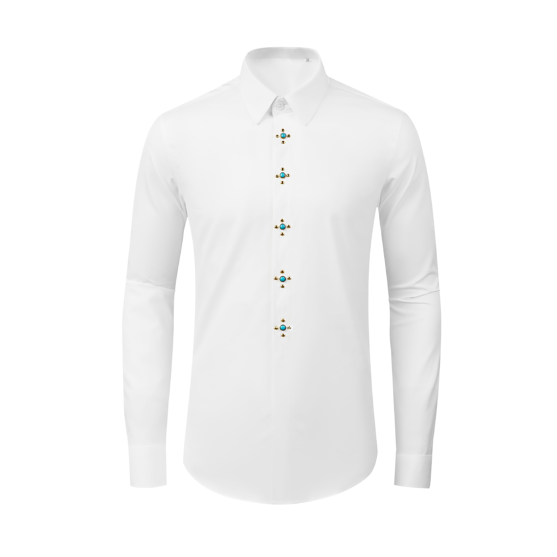트렌디 한 패션 남성용 셔츠 라켓 청록색 거짓말 장식 남성 슬림 핏 셔츠 남성 공장 머리