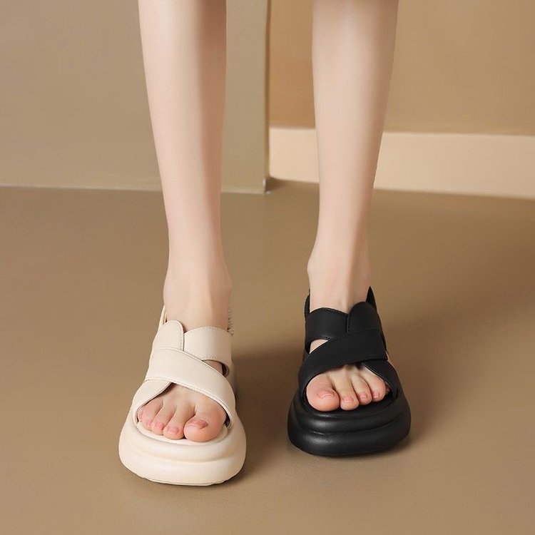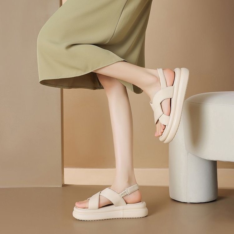 폭발성 탄성 스트랩 샌들 여성 2025 년 새로운 여름 아우터 착용 요정 스타일 스커트 스포츠 레저 비치 슬리퍼