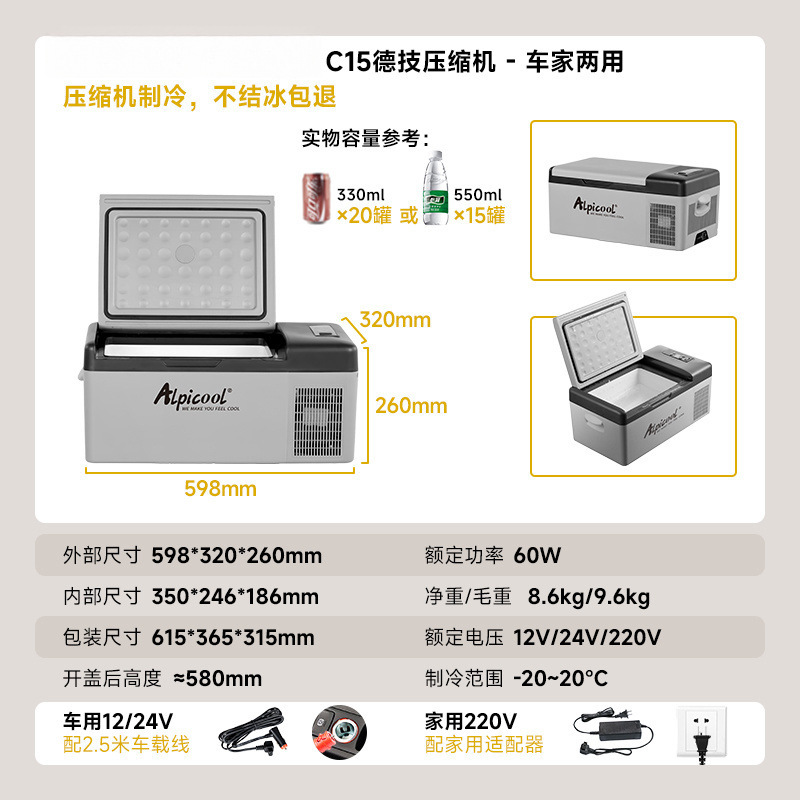 • C15-[압축냉동] 자동차와 가정 겸용 - 20도 얼음포함