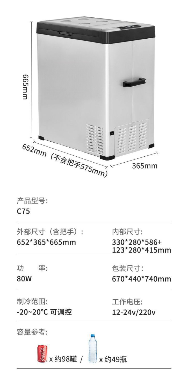• C75-[압축냉동] 자동차와 가정 겸용 - 20도 얼음포함