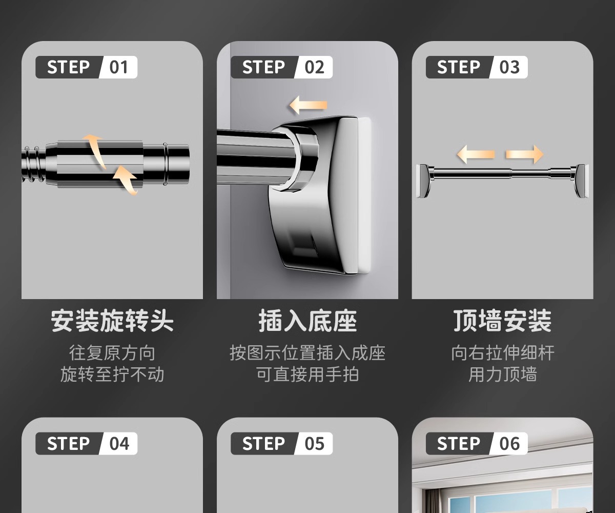 ✅구멍이없는 세탁 망원경로드 지원 로드 하중지지 커튼 조정 가능한 욕실 샤워 커튼스토어 가기