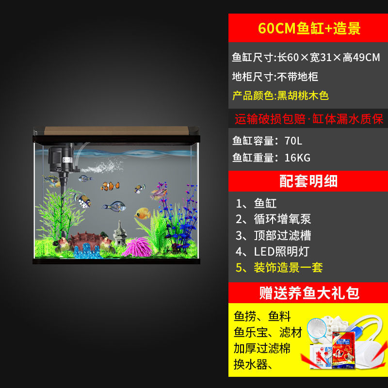 • 60CM 길이의 수조(온도 표시 없음) + 나무 캐비닛 + 풍경