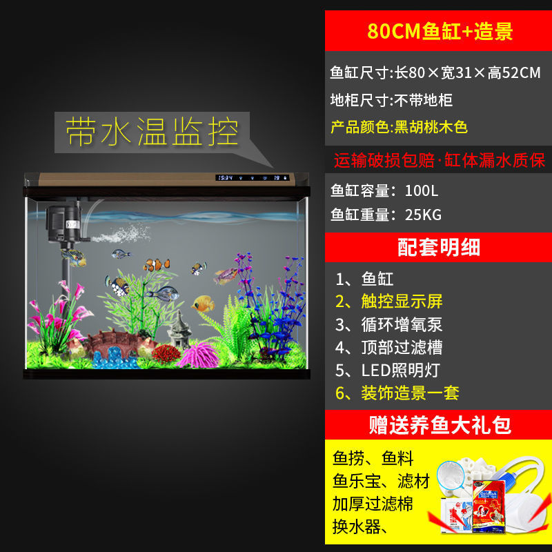 • 80CM 수조(온도 표시 포함) + 나뭇결 캐비닛 + 풍경