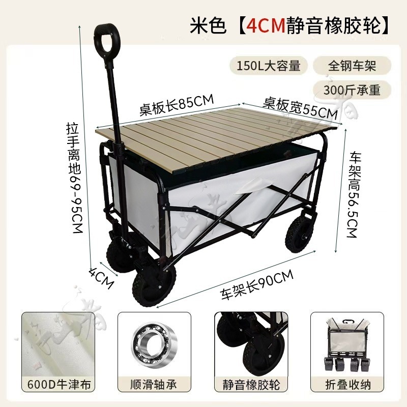 • 베이지 [600D 이중 두꺼운 옥스포드 천] - 10inch 탱크 휠 + 더블 브레이크 + 견인 버킷 스타일 + 접이식 블랙 테이블