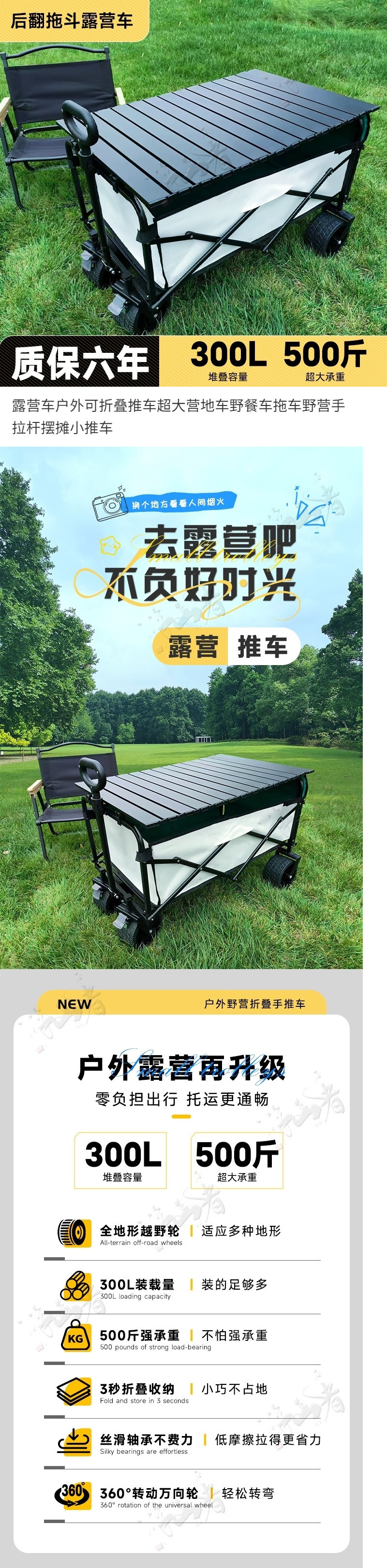 • 야오헤이 [600D 이중 두꺼운 옥스포드 천] - 10inch 탱크 휠 + 더블 브레이크 + 강화된 노점 노란색 테이블