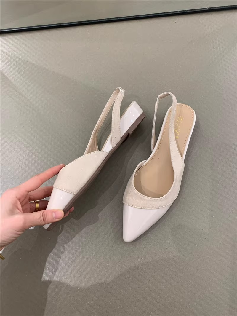 프렌치 젠틀 페어리 웨지 슈즈 2025 새로운 스타일 우아한 가죽 뾰족한 앞코와 뒷부분이 빈 통근 샌들스토어 가기