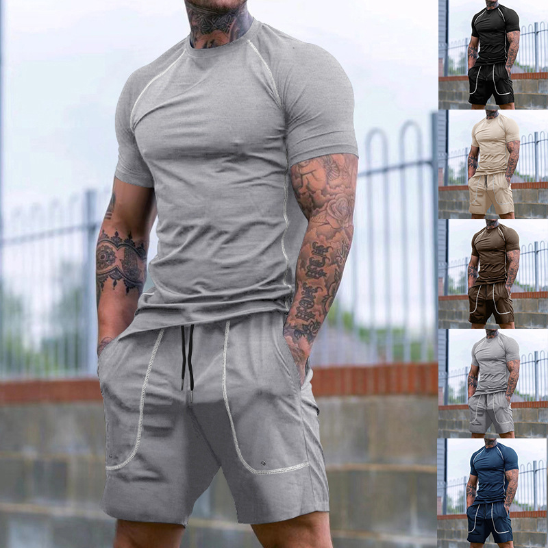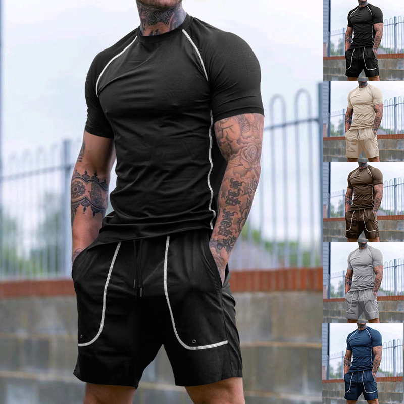 2024 유럽과 미국 국경 아마존 도매 여름 새로운 스포츠 스타킹 남성 달리기 피트니스 의류 세트스토어 가기