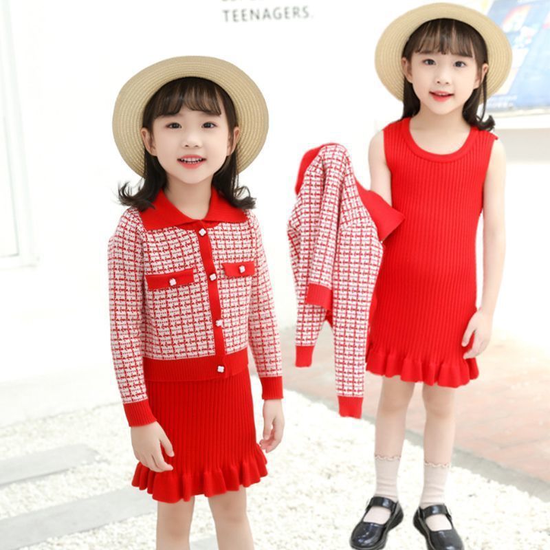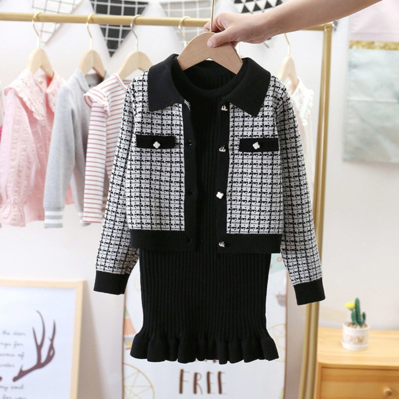 어린이 원피스 세트 새로운 긴 서양식 어린이 긴 소매 2025 스커트 짧은 소녀 투피스 세트