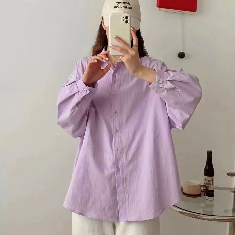 일본 모리 스타일 단색 셔츠 여성 화이트 셔츠 대학 스타일 어깨 셔츠 일본 스타일 썬 긴 소매 재킷 탑스토어 가기