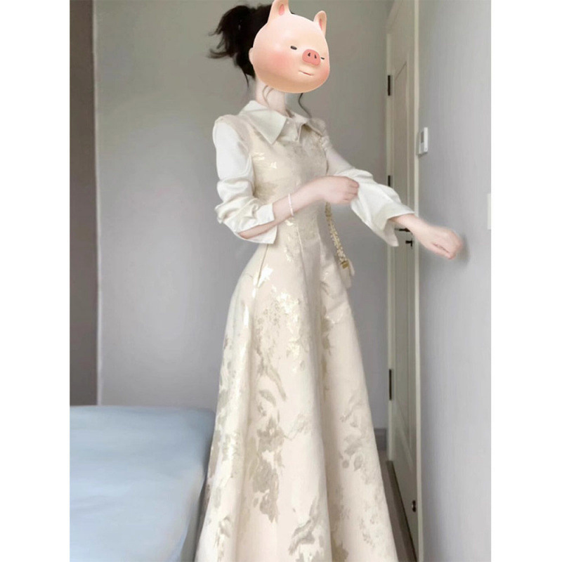 프랑스 복고풍 우아한 원피스 기질 부드러운 스타일 원피스 틈새 세련된 셔츠 투피스 세트 2025 가을과 겨울