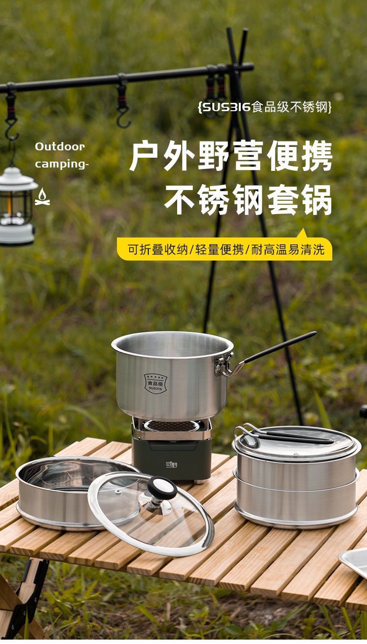 야외 조리기구 세트 휴대용 요리 세트 냄비 야생 튀김 냄비 스토브 캠핑 조리기구 캠핑 피크닉 접이식 냄비스토어 가기