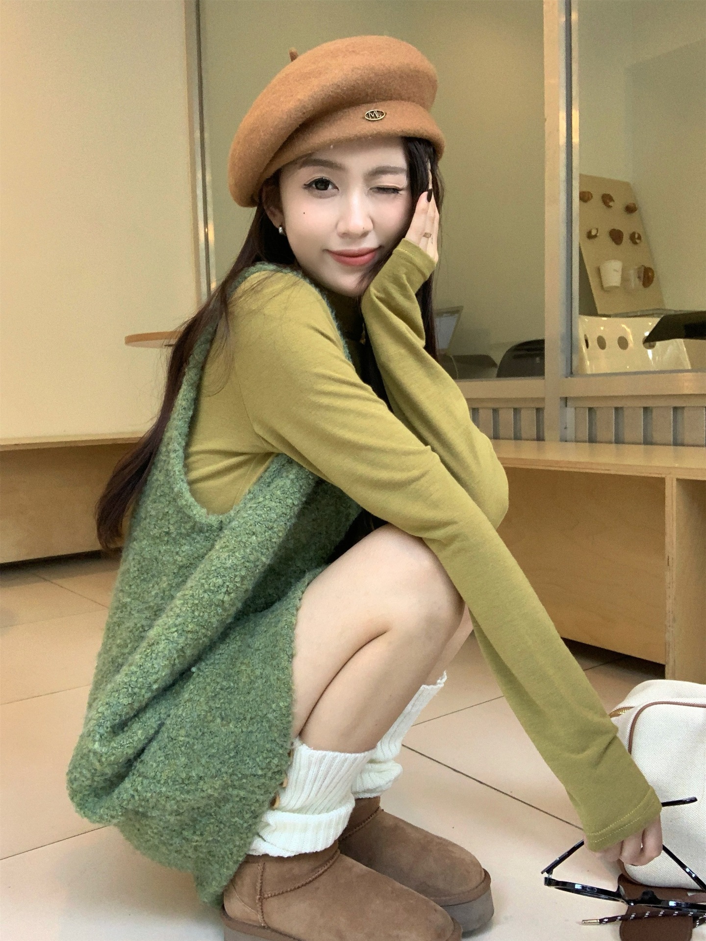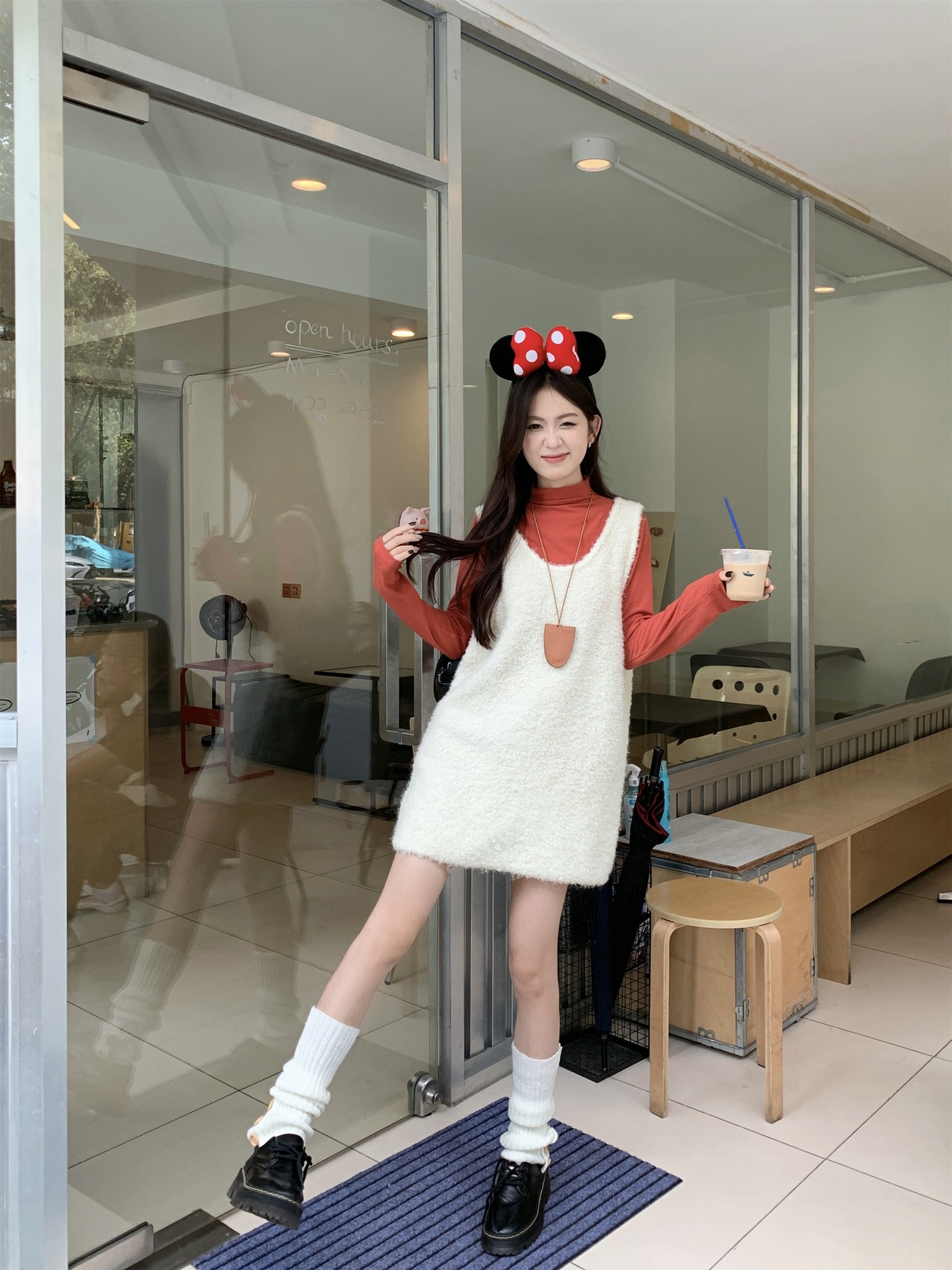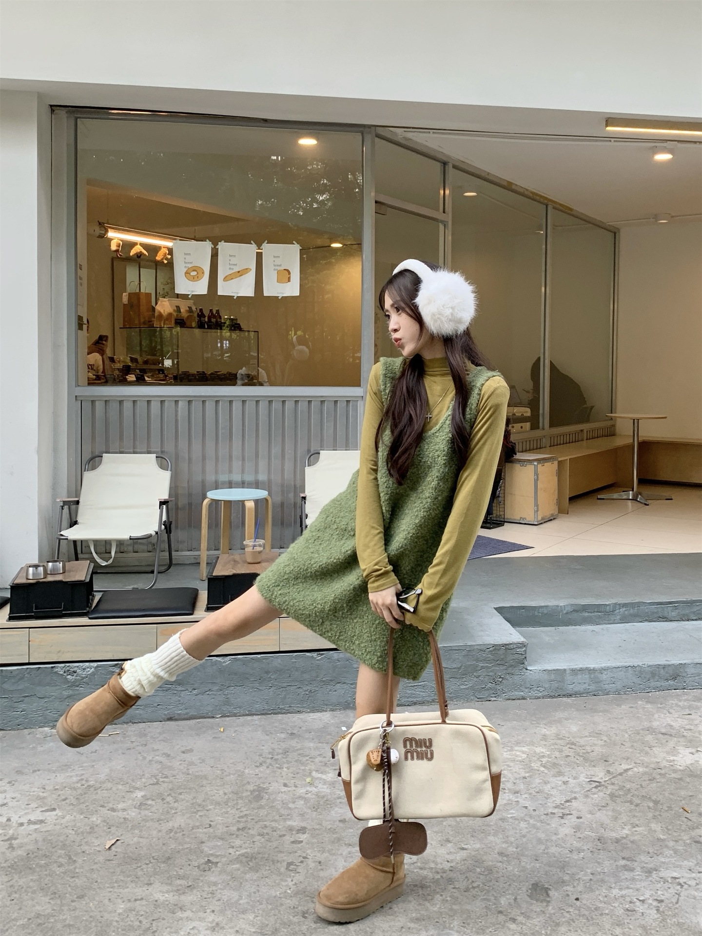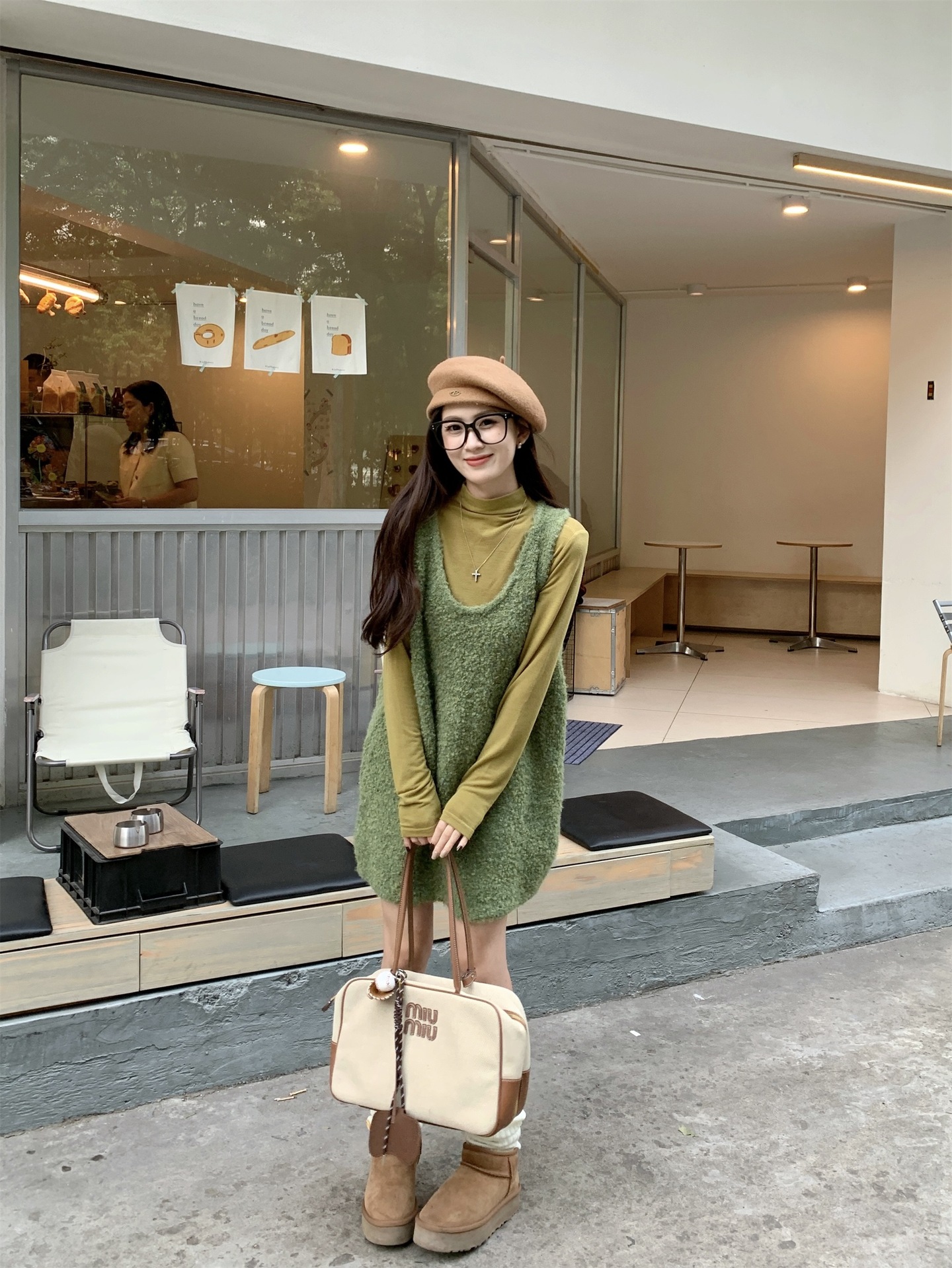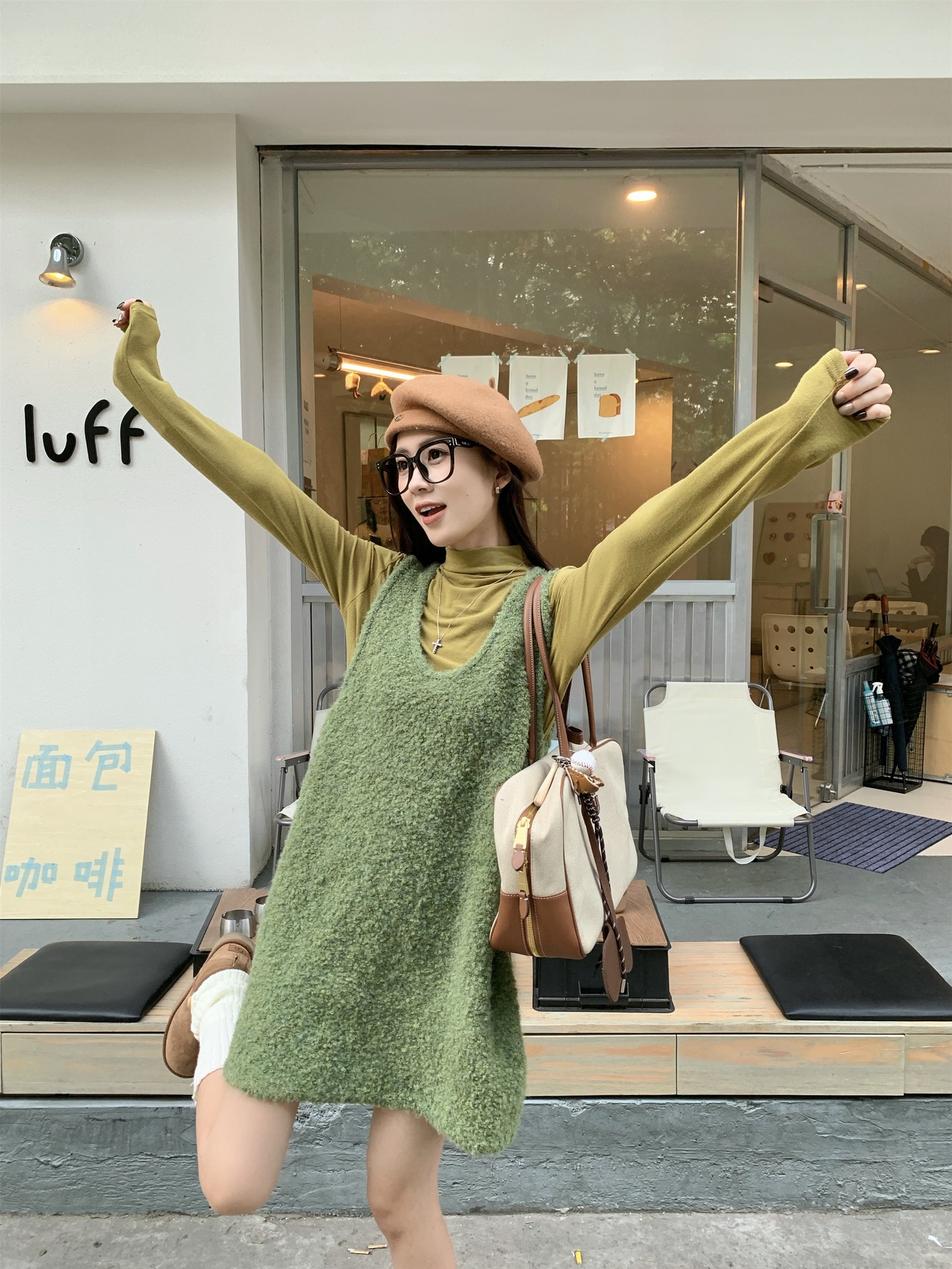 쌓인 U-넥 스트랩 원피스 여성의 봄 2025 새로운 느슨한 슬리밍 레트로 민소매 패션 니트 스커트스토어 가기