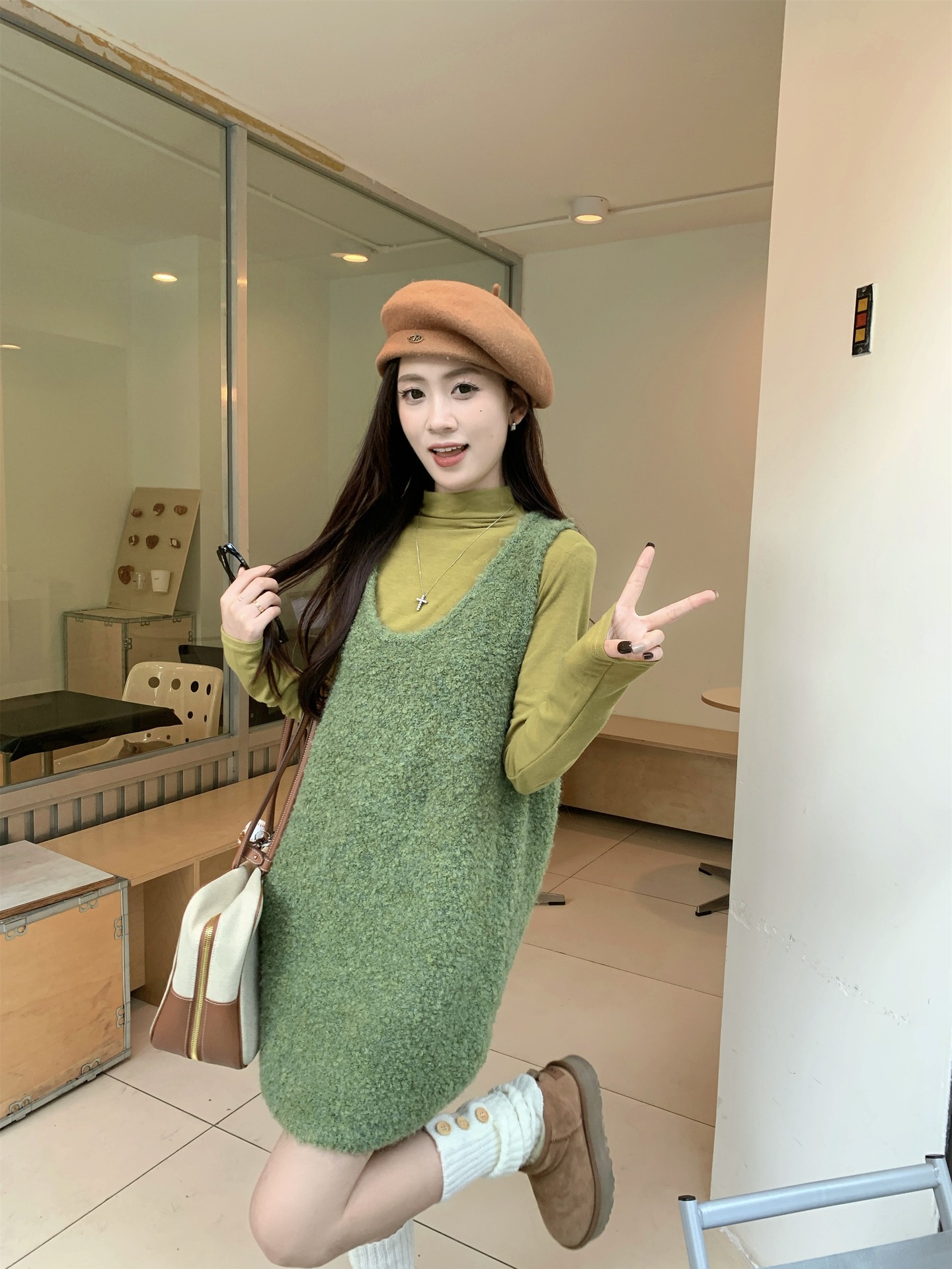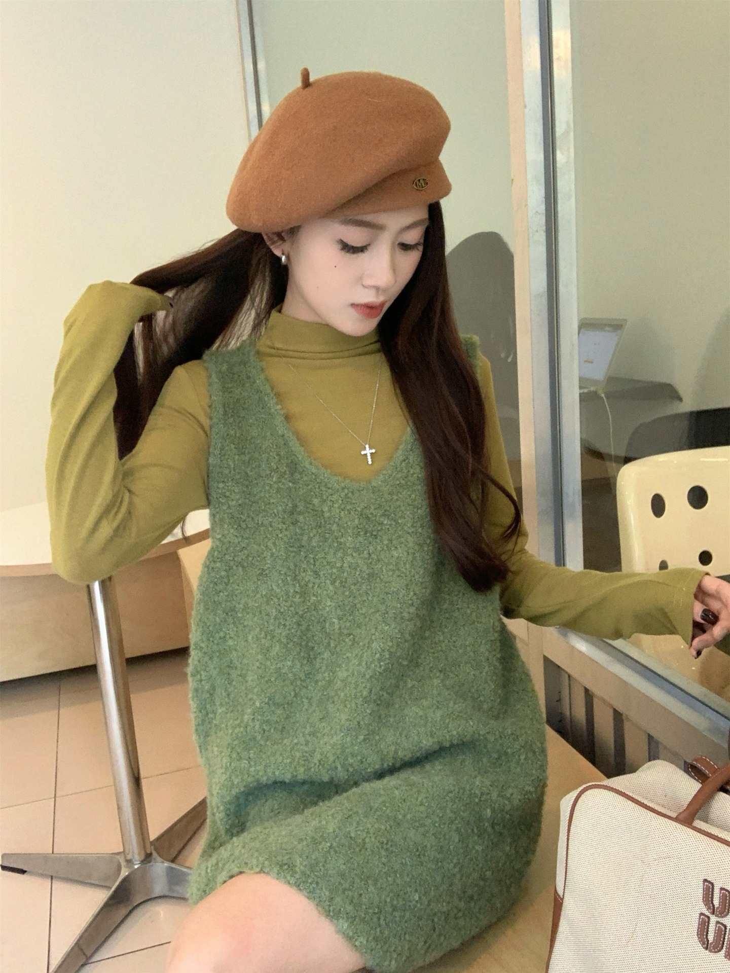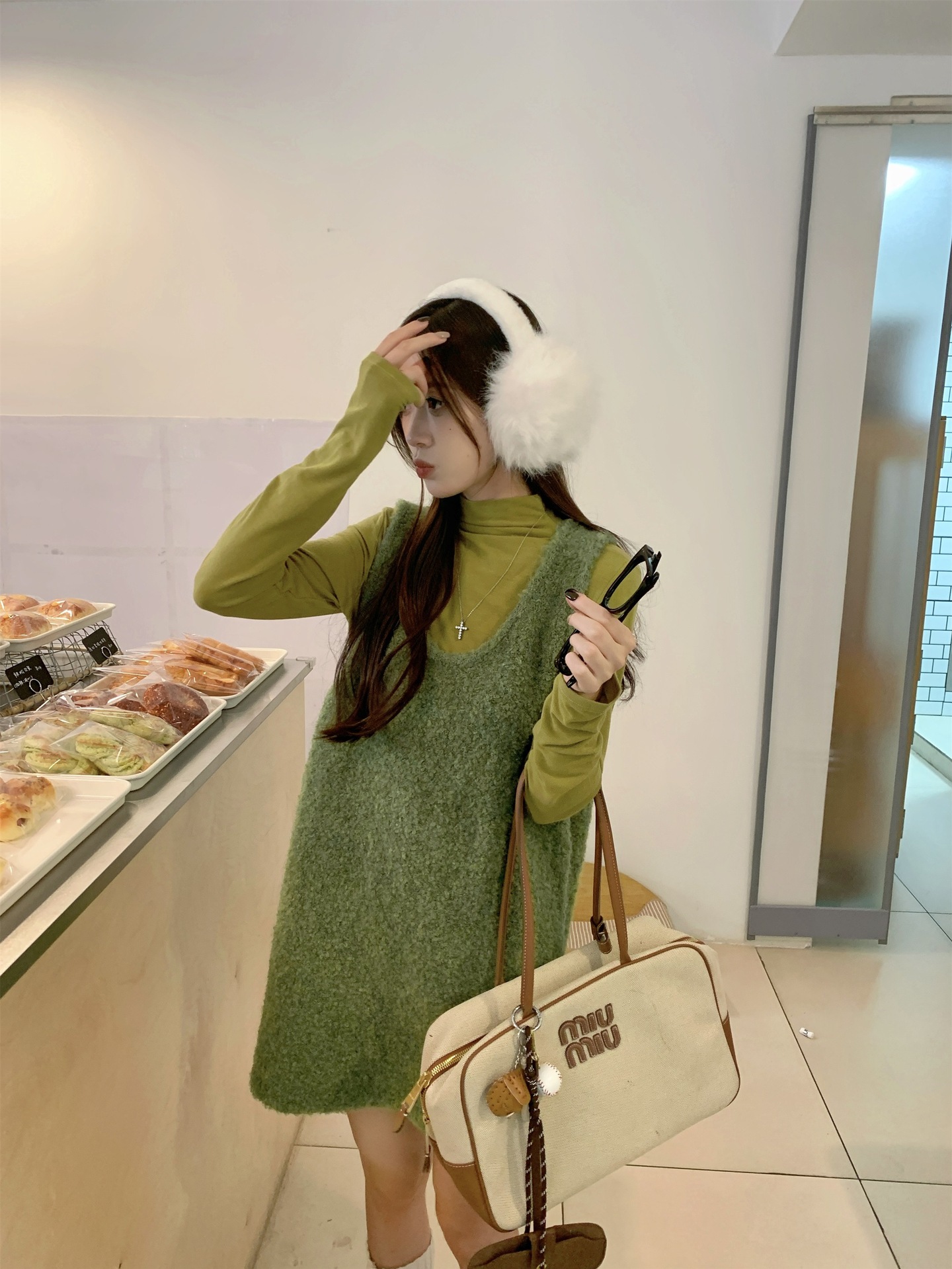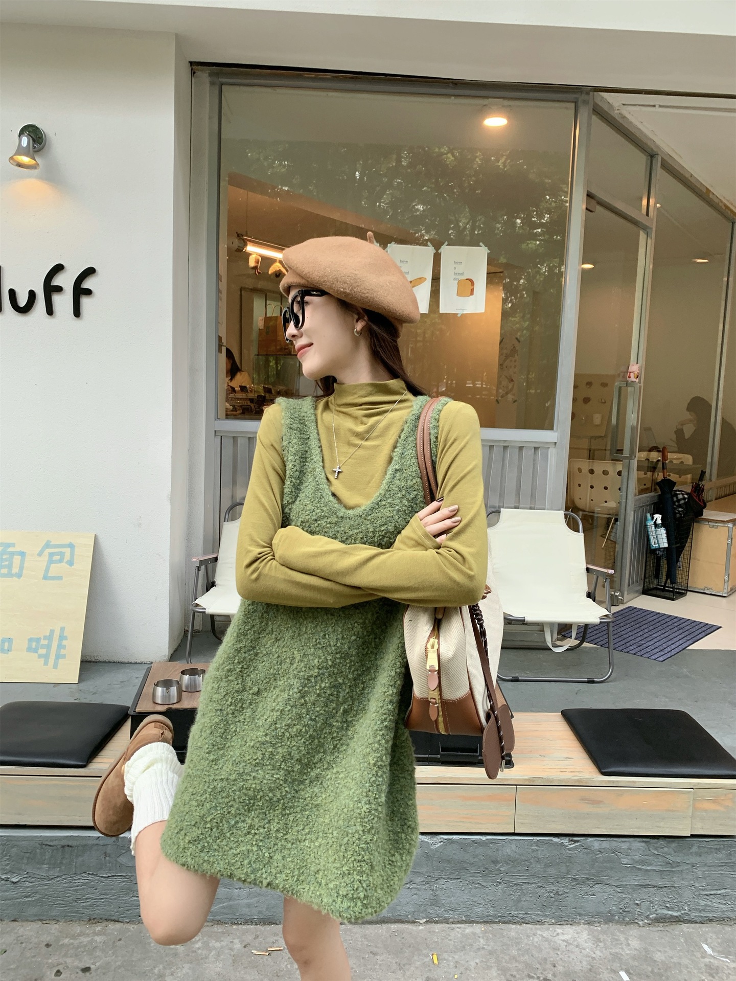 쌓인 U-넥 스트랩 원피스 여성의 봄 2025 새로운 느슨한 슬리밍 레트로 민소매 패션 니트 스커트