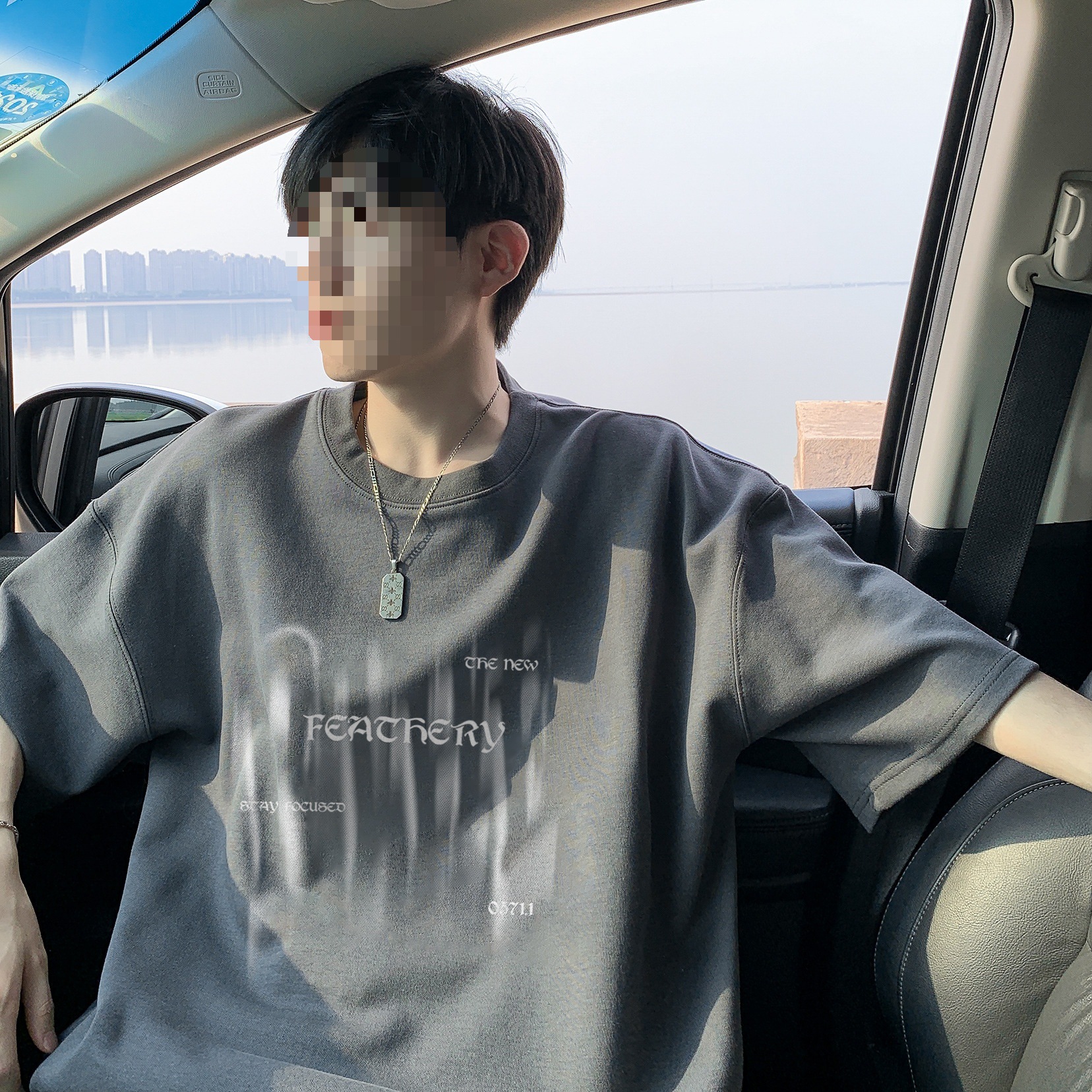 Fanno Fanno 헤비 일본 버티고 프린트 남자 반팔 티셔츠 여름 청소년 올 매치 오버 시즈 도매스토어 가기