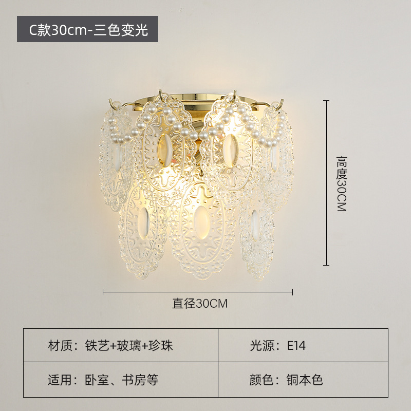 프랑스식 유리 침실 조명 이탈리아식 중세풍 창의적인 거실 크리스탈 침대 옆 벽등 미니멀리스트 LED 조명 실내용스토어 가기