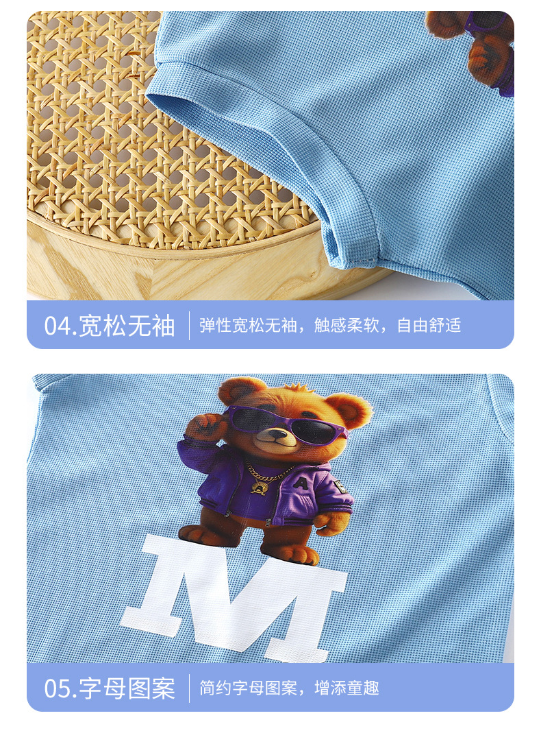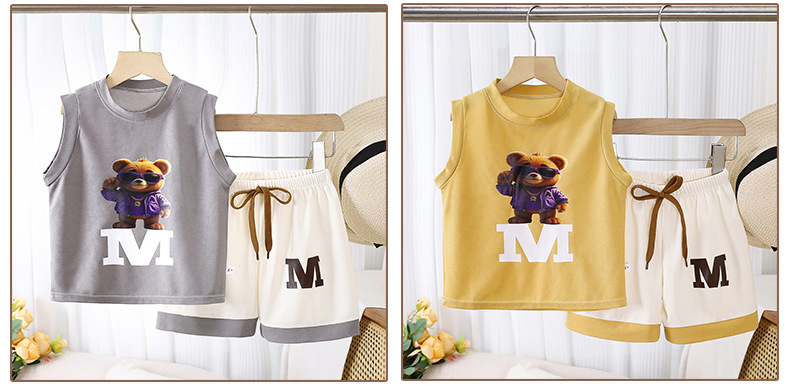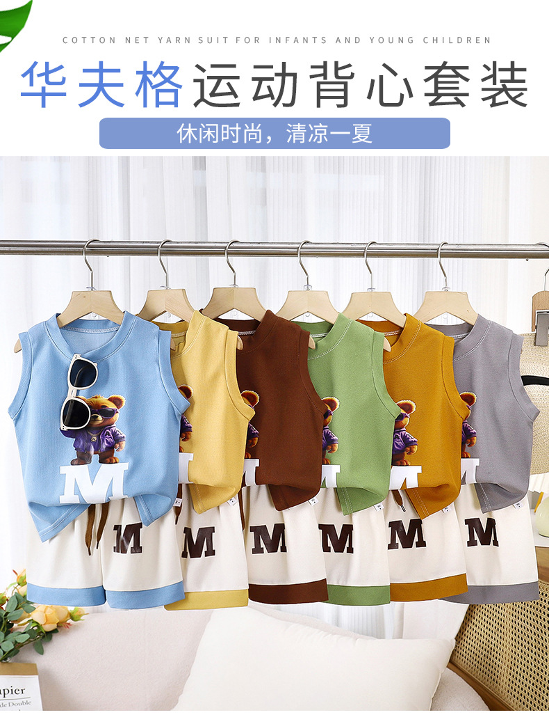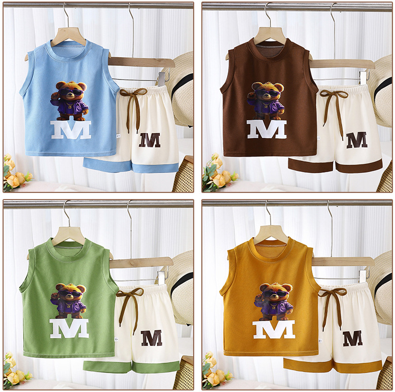 어린이 새로운 만화 조끼 세트 여름 큰 어린이 민소매 조끼 얇은 아기 조끼 반바지 머리카락스토어 가기