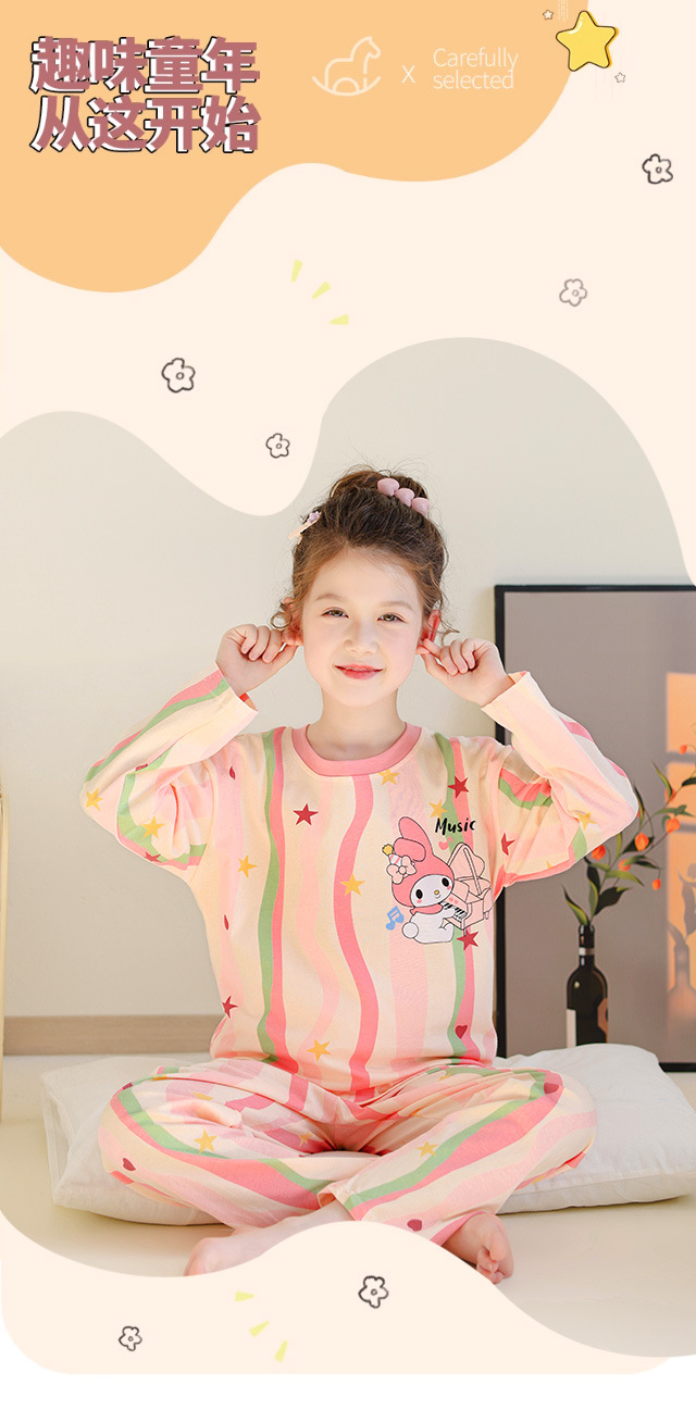 멜로디 잠옷 소녀 만화 봄, 가을 반팔 반바지 어린이 중대형 소년 여름 속옷 가정 의류 여름스토어 가기