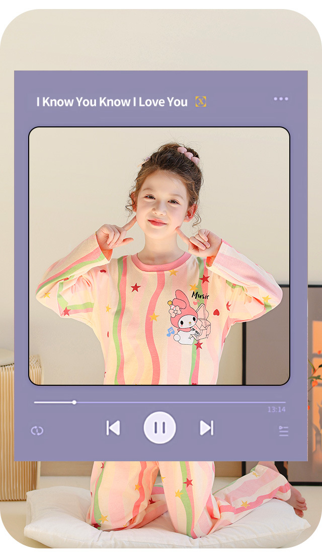 멜로디 잠옷 소녀 만화 봄, 가을 반팔 반바지 어린이 중대형 소년 여름 속옷 가정 의류 여름