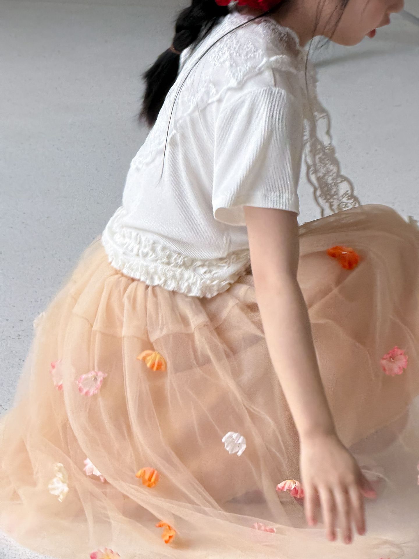 어린이 치마 2025 여름 새 소녀 달콤한 3 차원 꽃 베일 치마 소녀 치마 요정 공주 치마